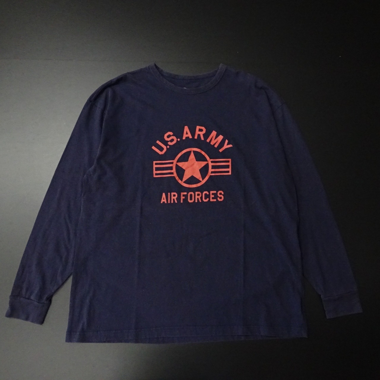 00s- ALPHA アルファ 長袖Tシャツ U.S.ARMY プリント フェード ビッグサイズ 00年代~ ネイビー