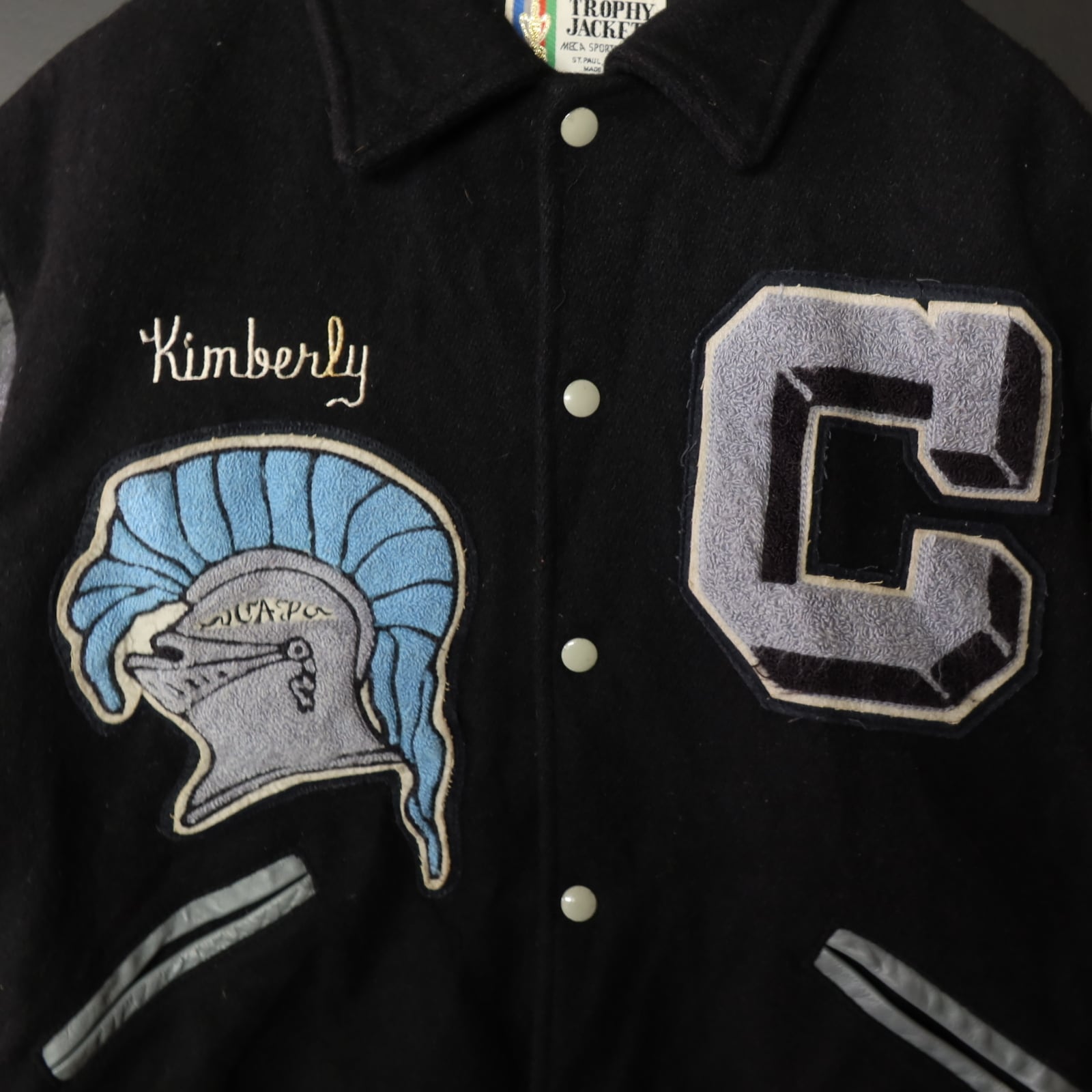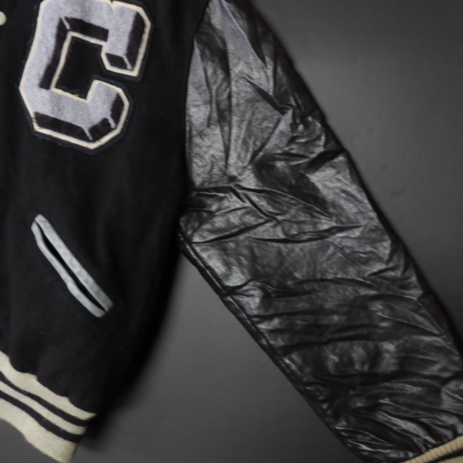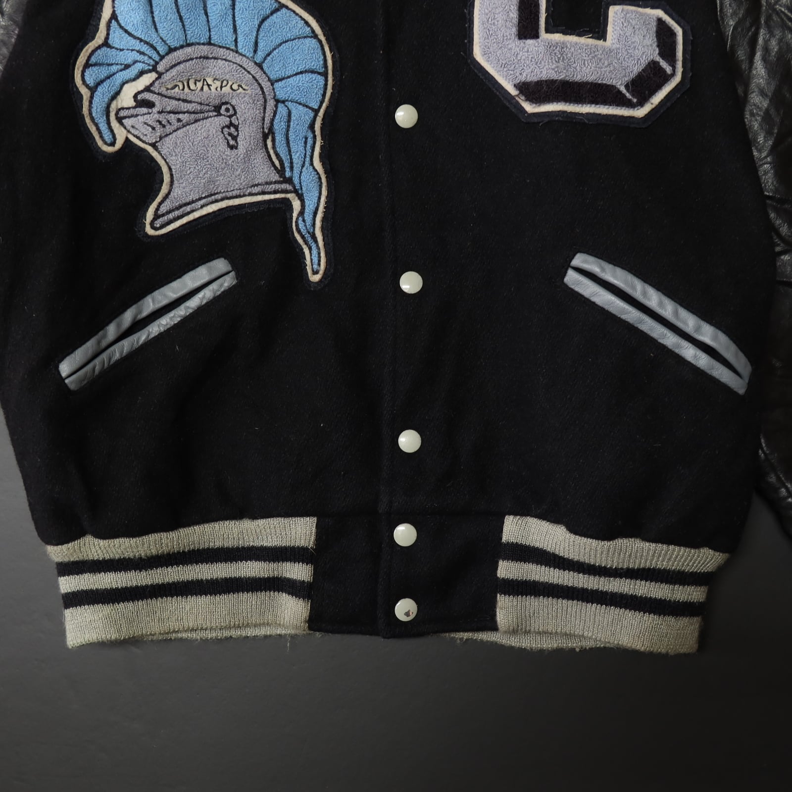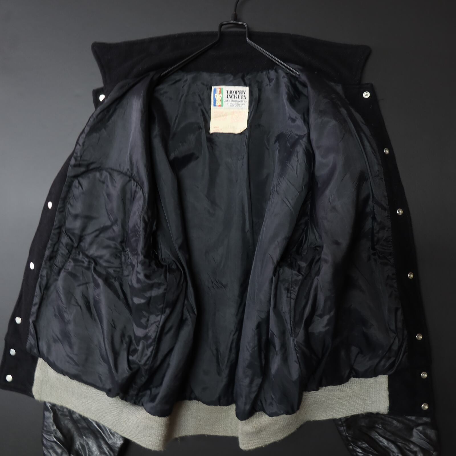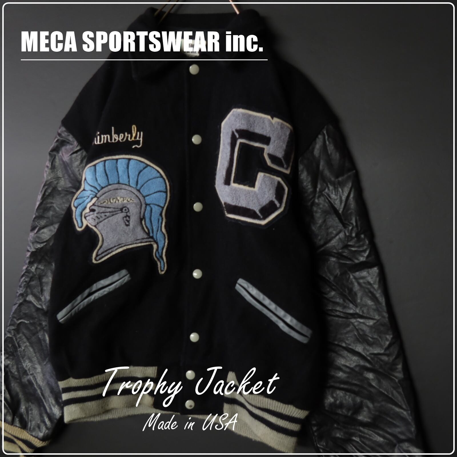 90s Vintage US古着☆MECA Sportswear トロフィージャケット スタジアムジャケット スタジャン 袖レザー ワッペン USA製 ブラック 90's 90年代 希少デザイン