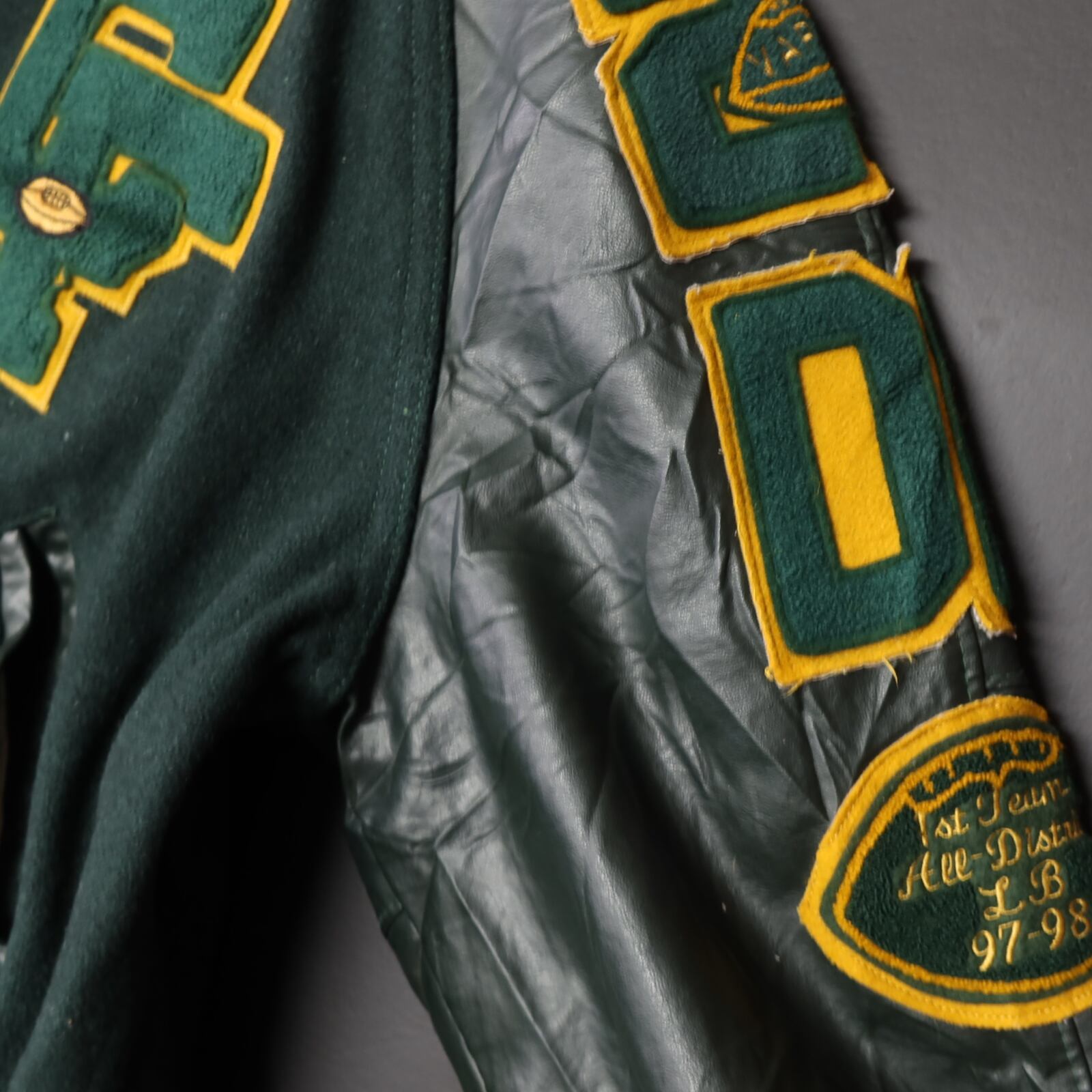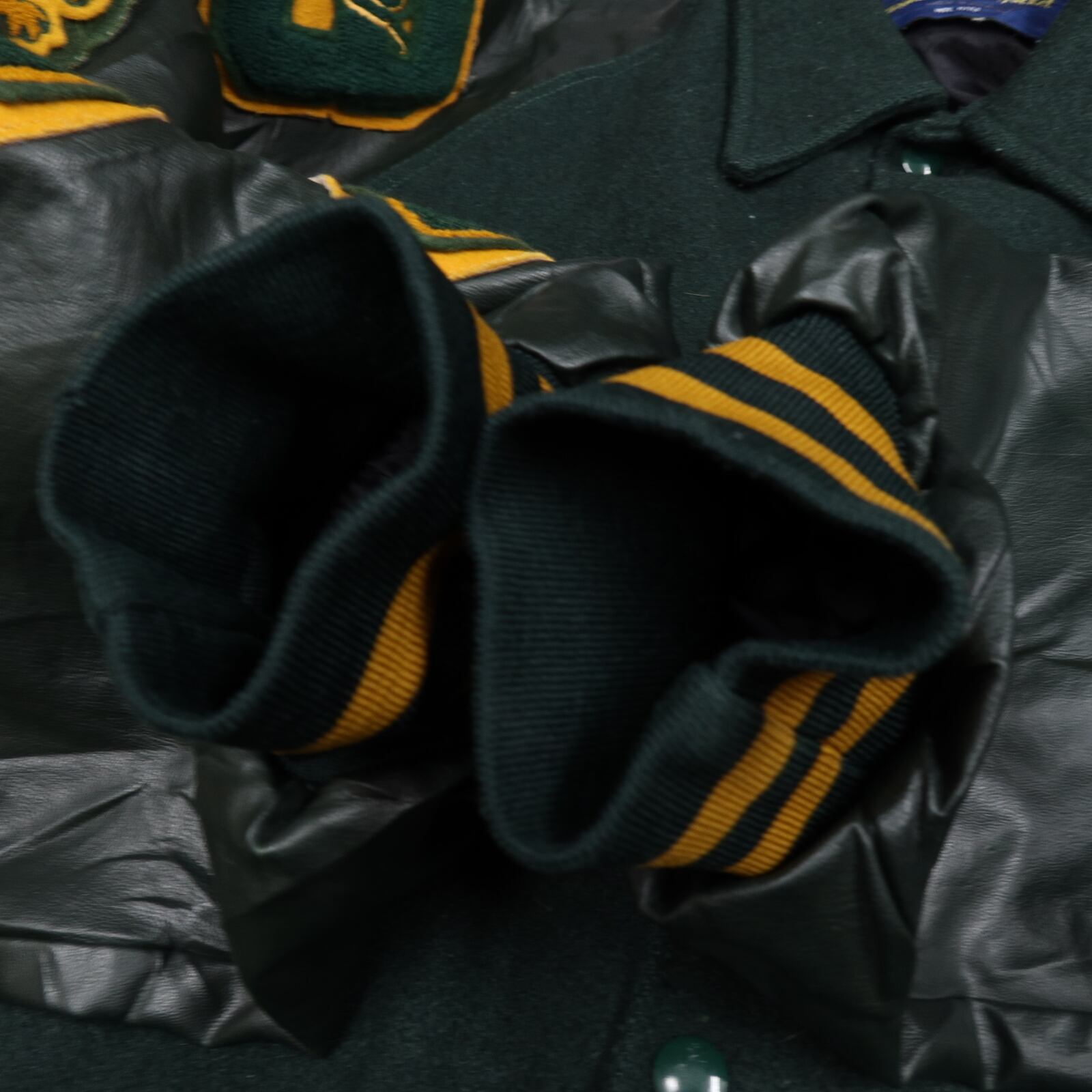 ◆袖(レザー)にキズ・シワあり(袖のレザーのシワ深めです)