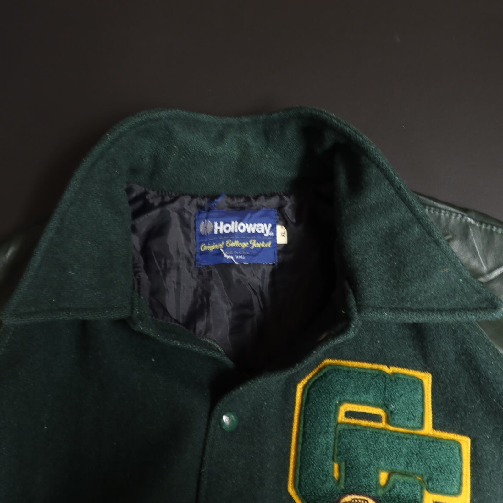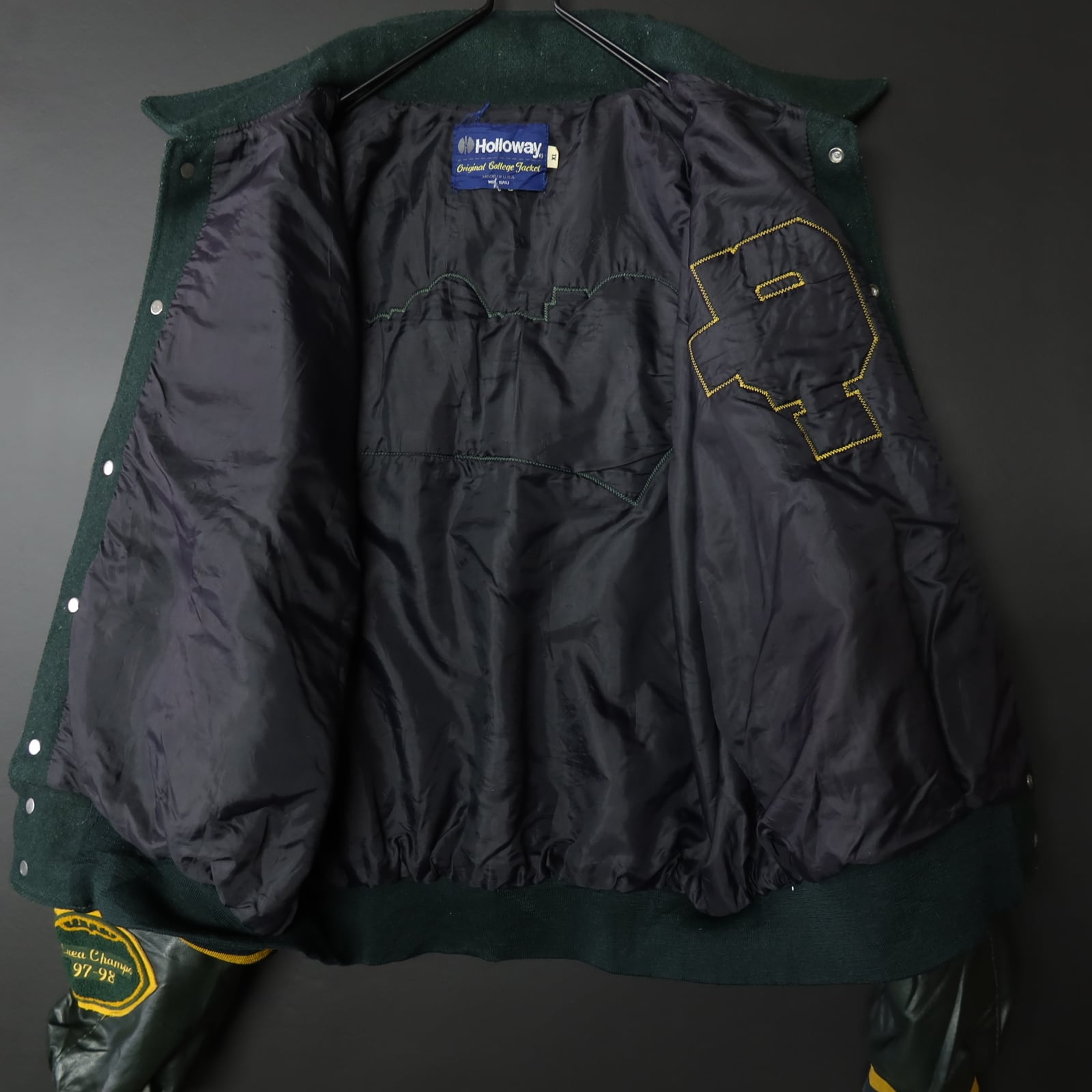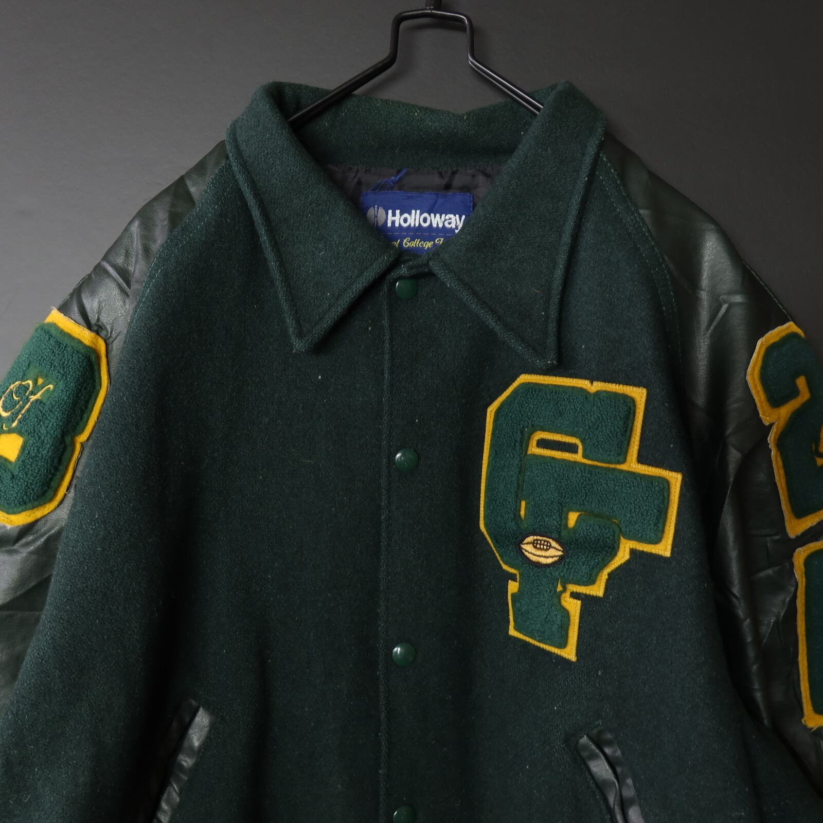 90s Vintage US古着☆Holloway ホロウェイ スタジアムジャケット スタジャン フルデコ ビッグサイズ SIZE XL グリーン 90's 90年代 グッドデザイン