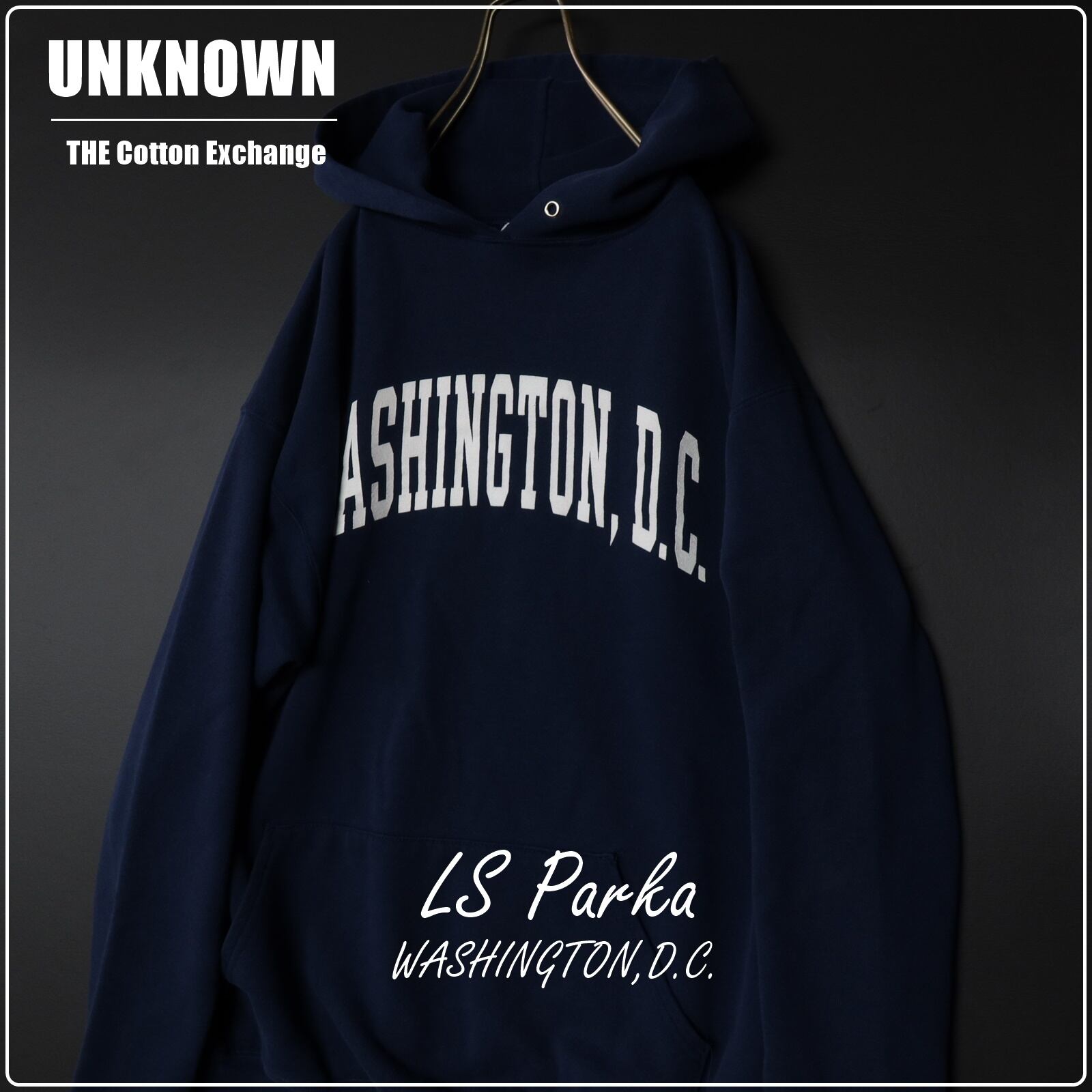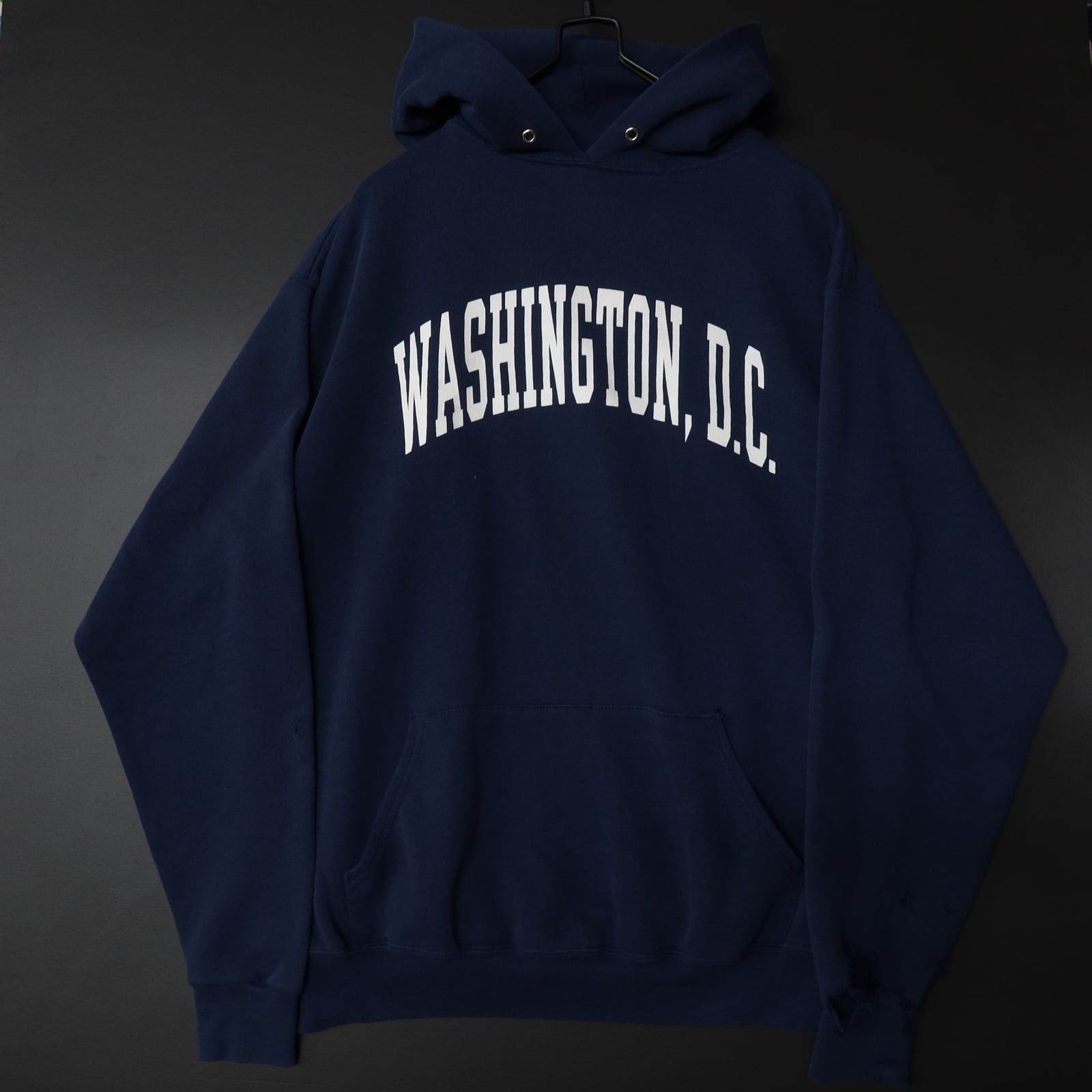 90s Vintage US古着☆Unknown 長袖プリントパーカー ワシントンDC アーチロゴ USA製 SIZE L ネイビー 90's 90年代 希少 グッドデザイン