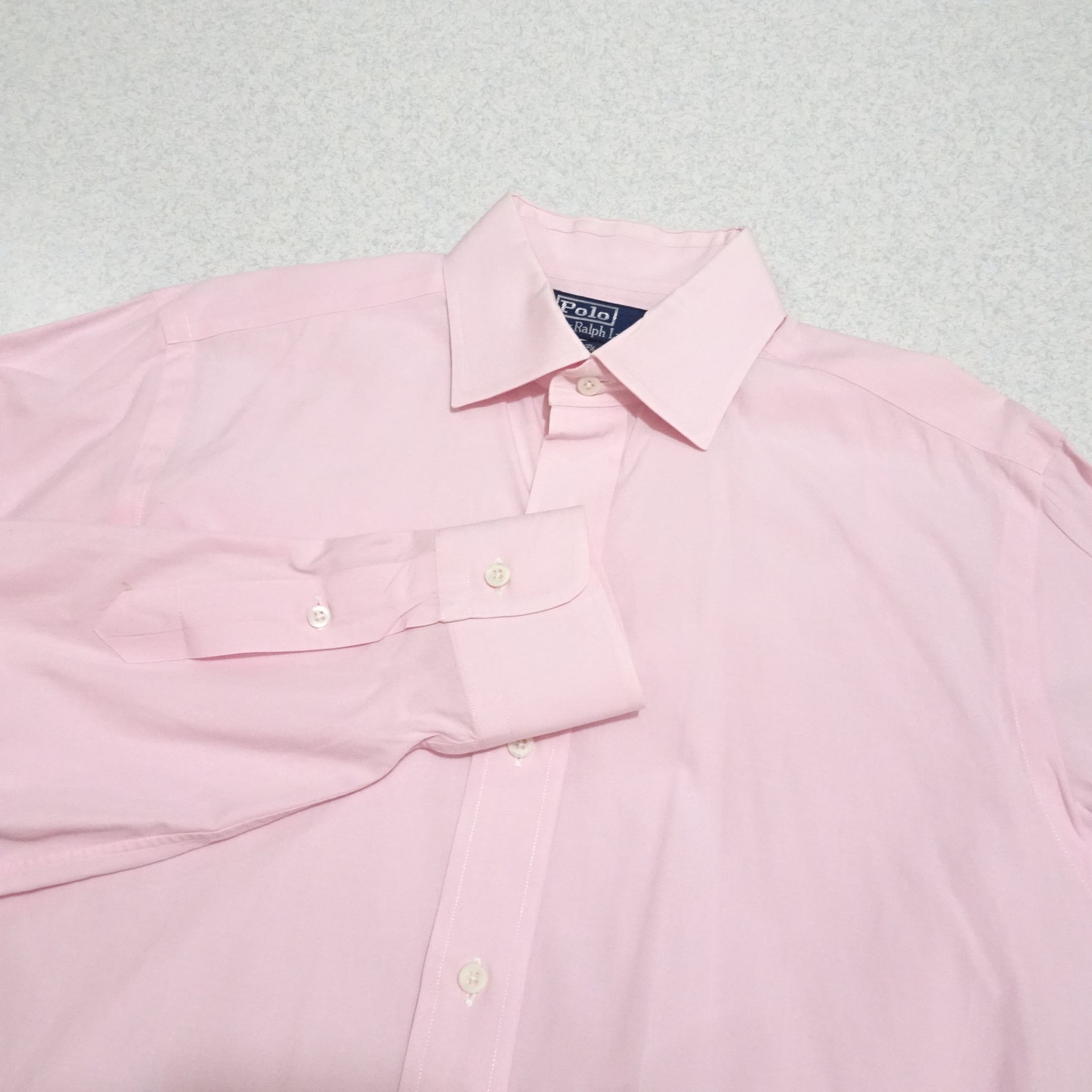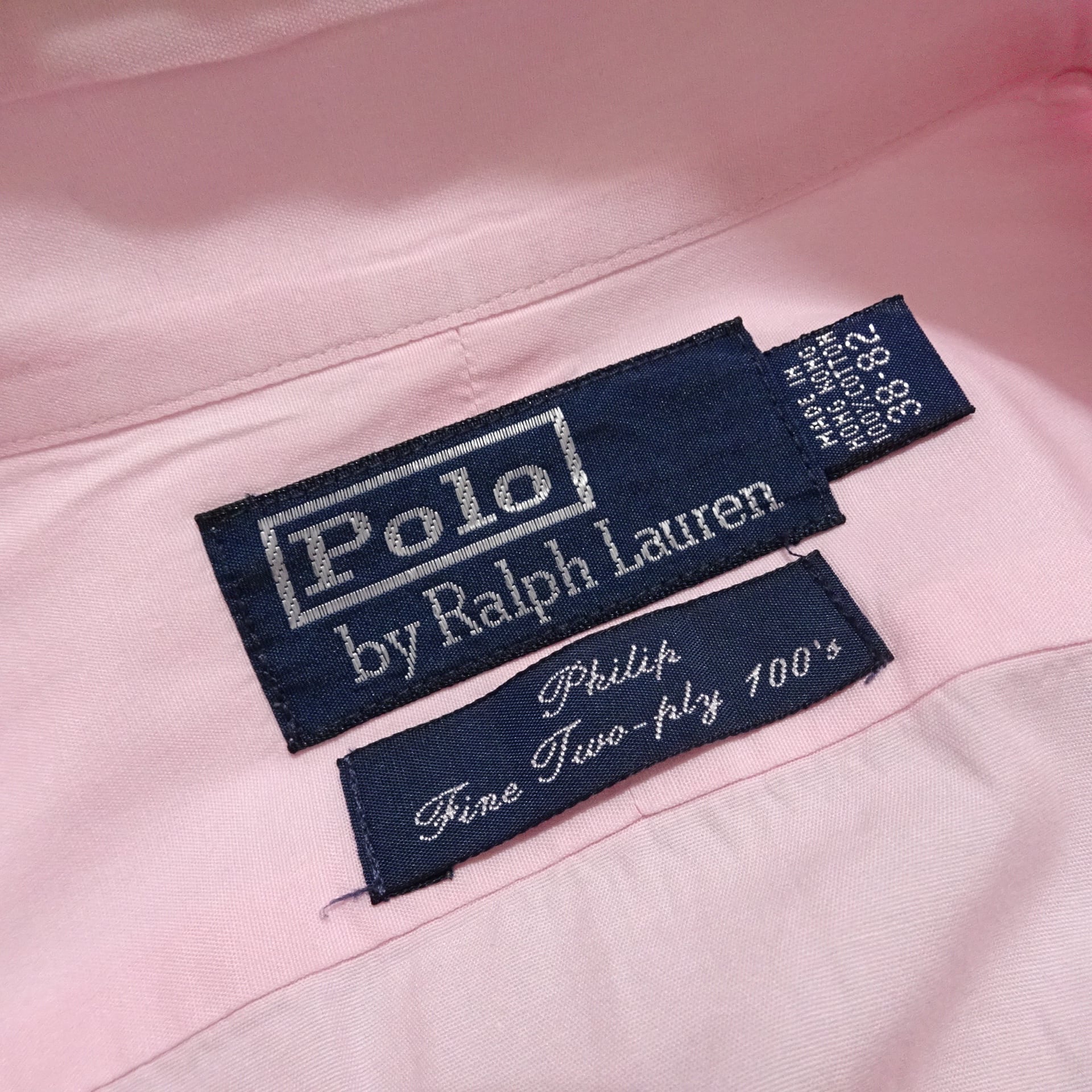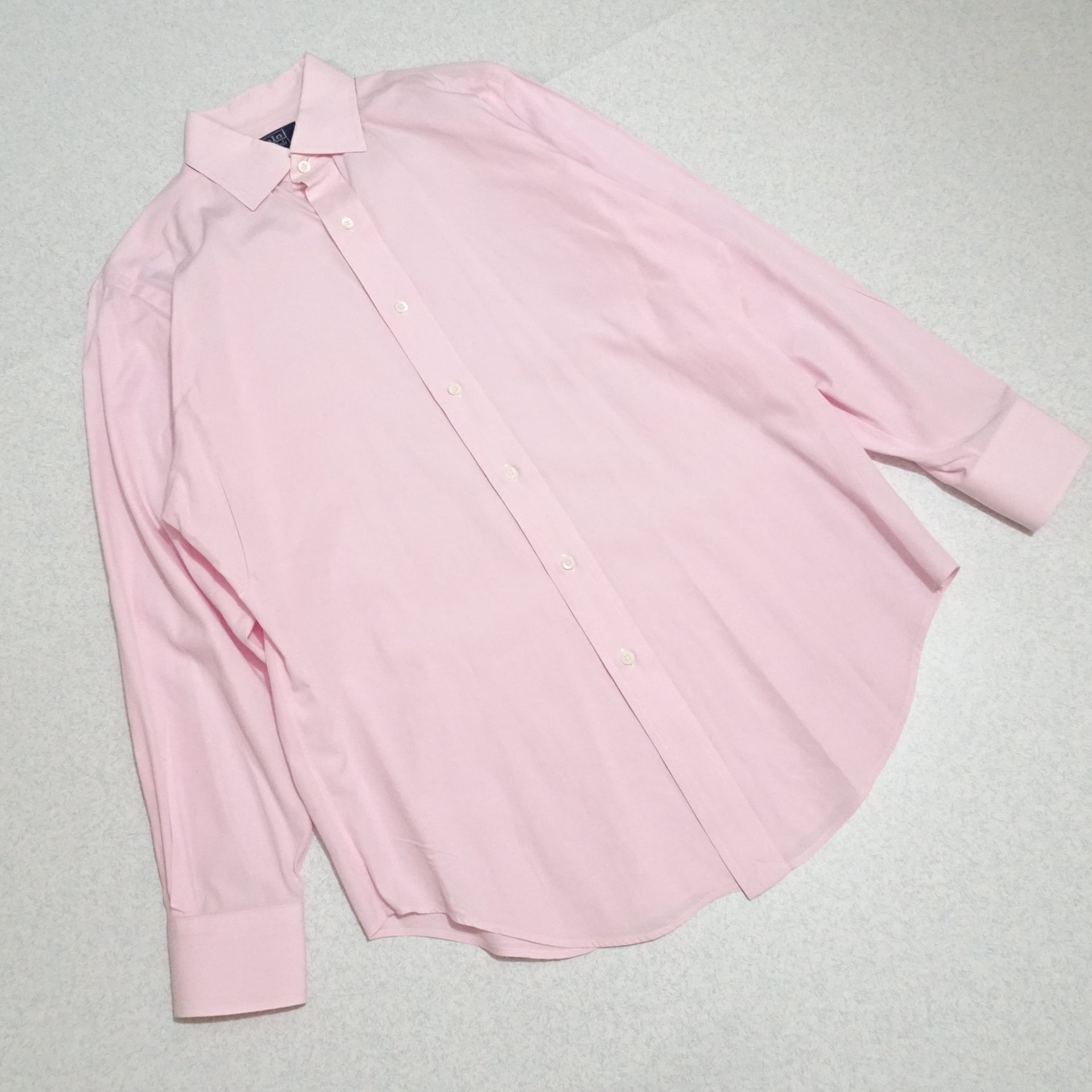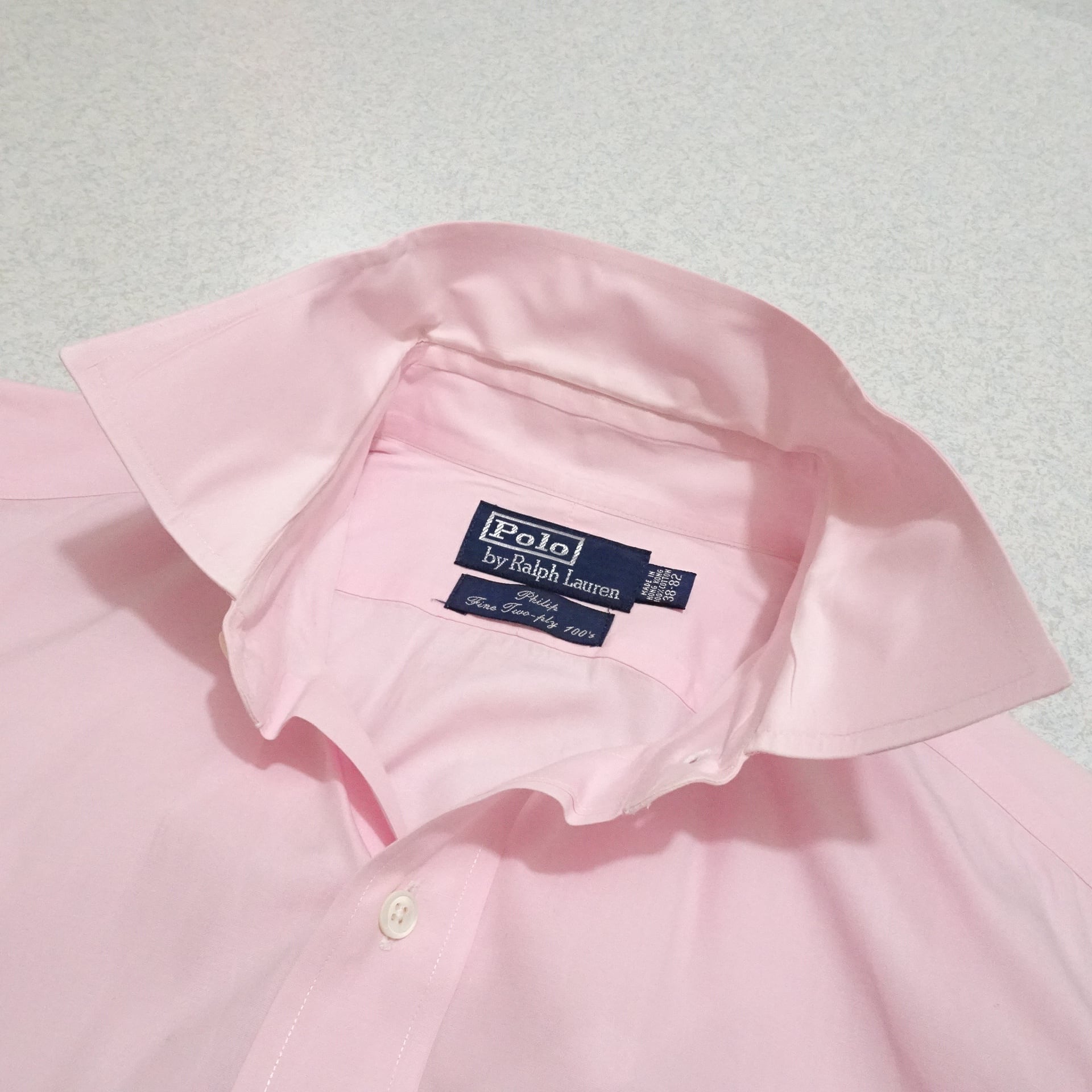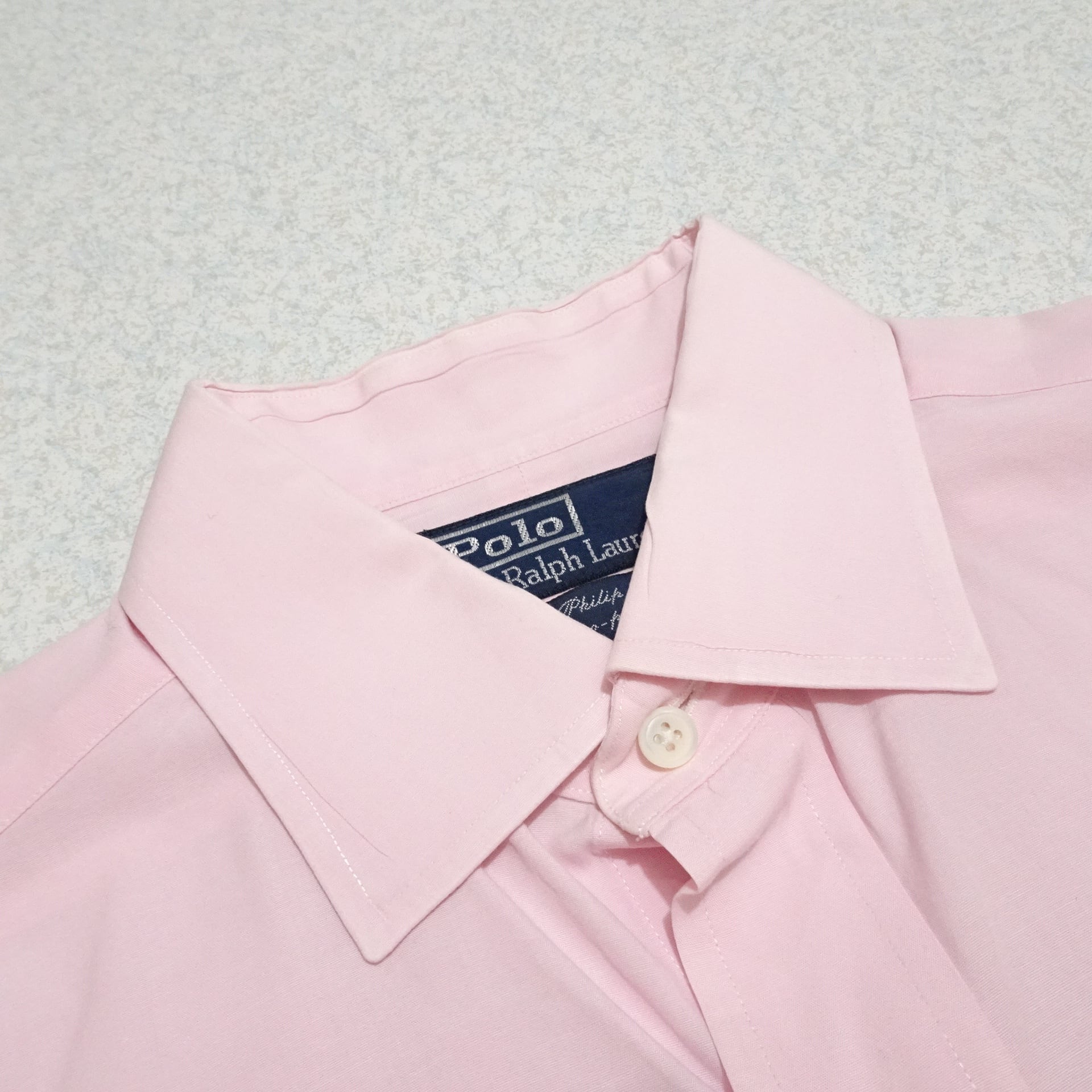 90s 香港製 ラルフローレン Philip 長袖シャツ ポニーなし ワイド襟 ワイドカラー ドレスシャツ 90年代~ ピンク系