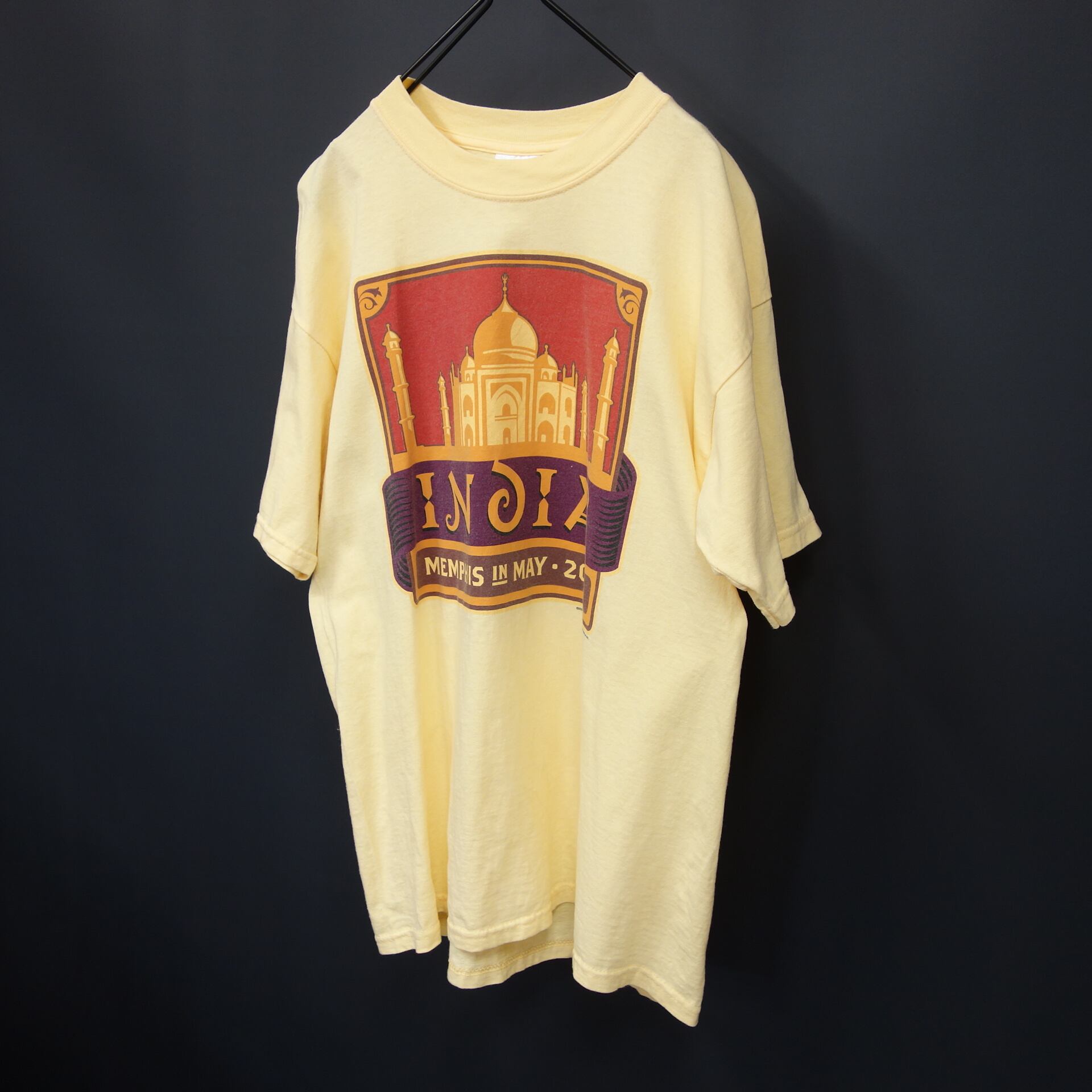 00s Vintage US古着☆MEMPHIS メンフィス 半袖プリントTシャツ 両面 イベント SIZE L イエロー 00's 00年代 グッドデザイン