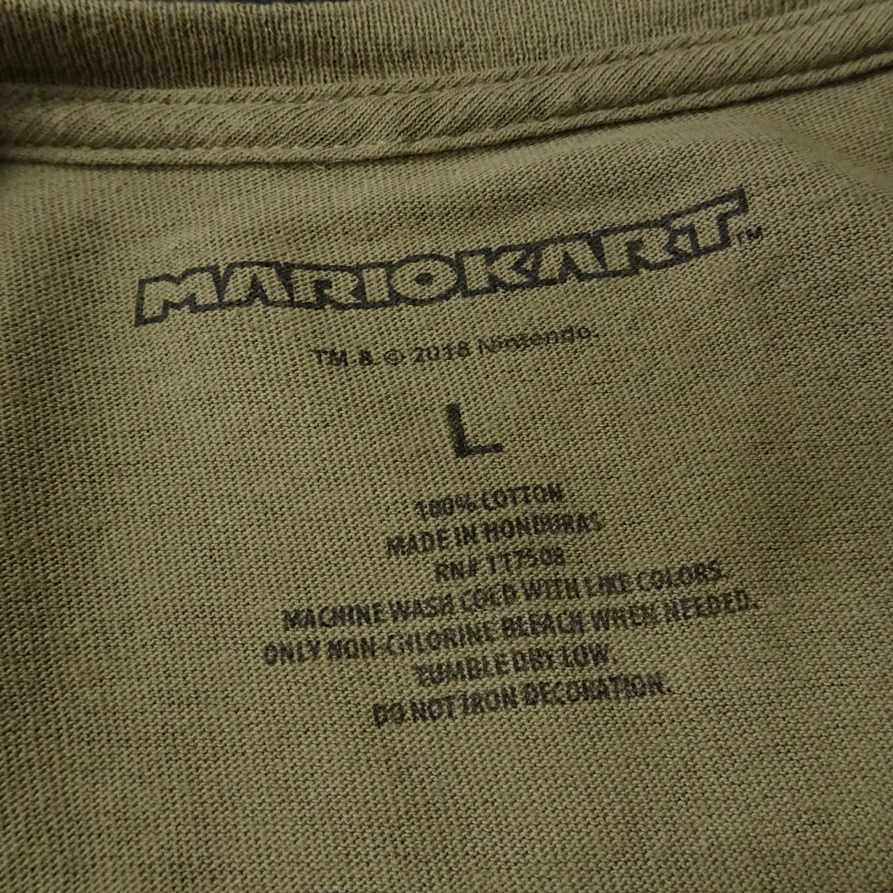 マリオたちがレーシングカート風の乗り物に乗り込み、マリオシリーズの世界観をモチーフにした多彩なコースで速さを競う大人気ゲームのオフィシャルTシャツです。
