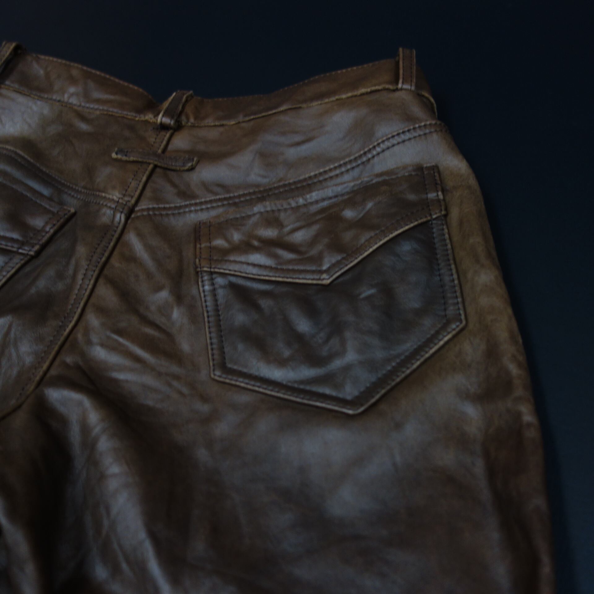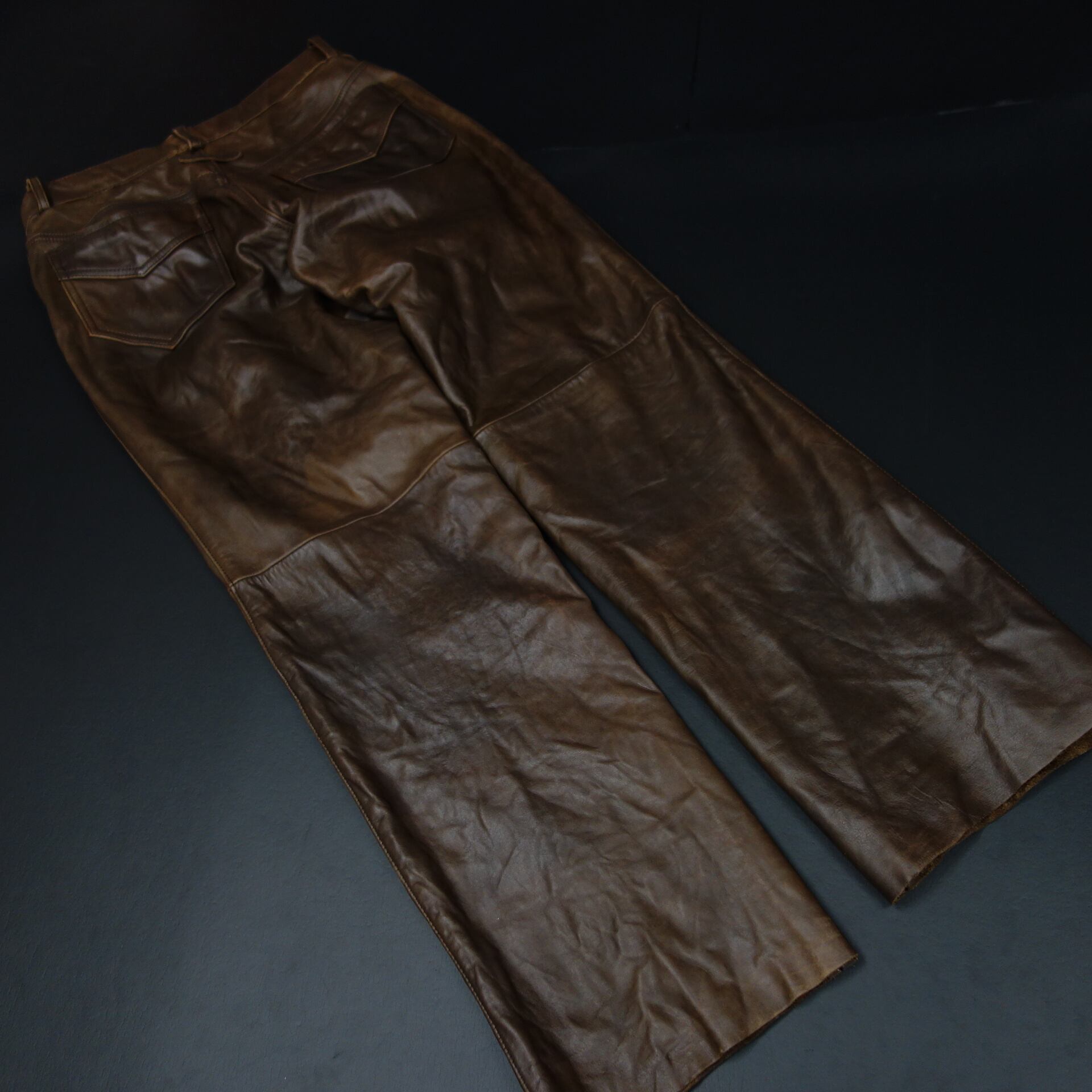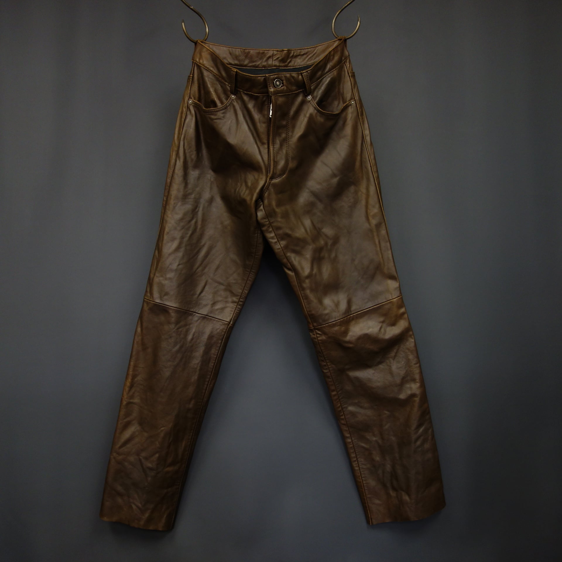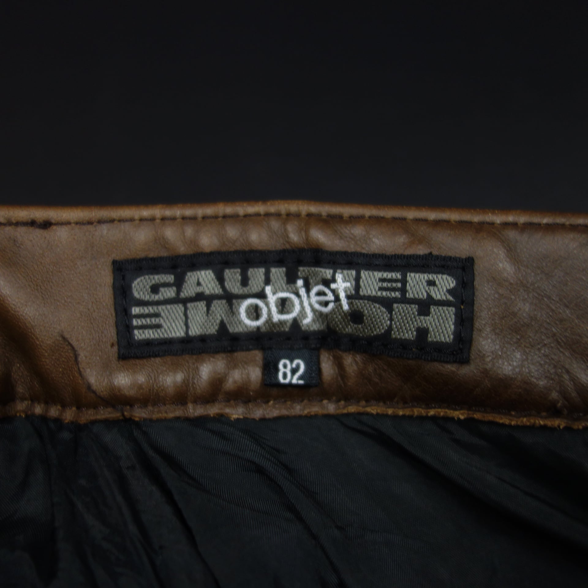 90s~ Vintage☆GAULTIER HOMME oblet ゴルチエオム レザーパンツ 牛革 SIZE 82 ブラウン 90's 90年代 希少 人気アイテム