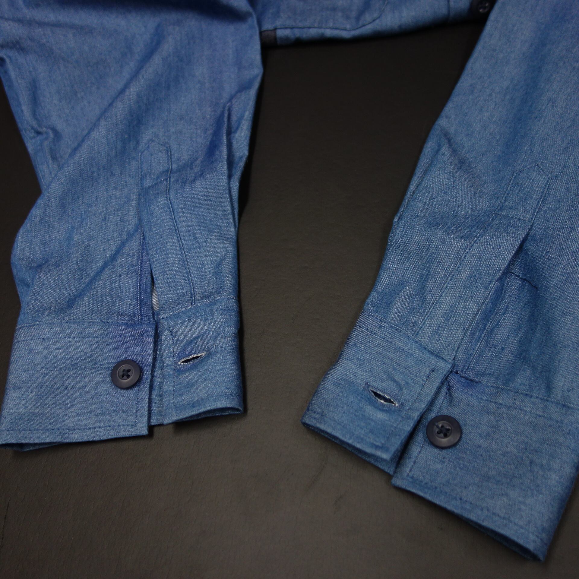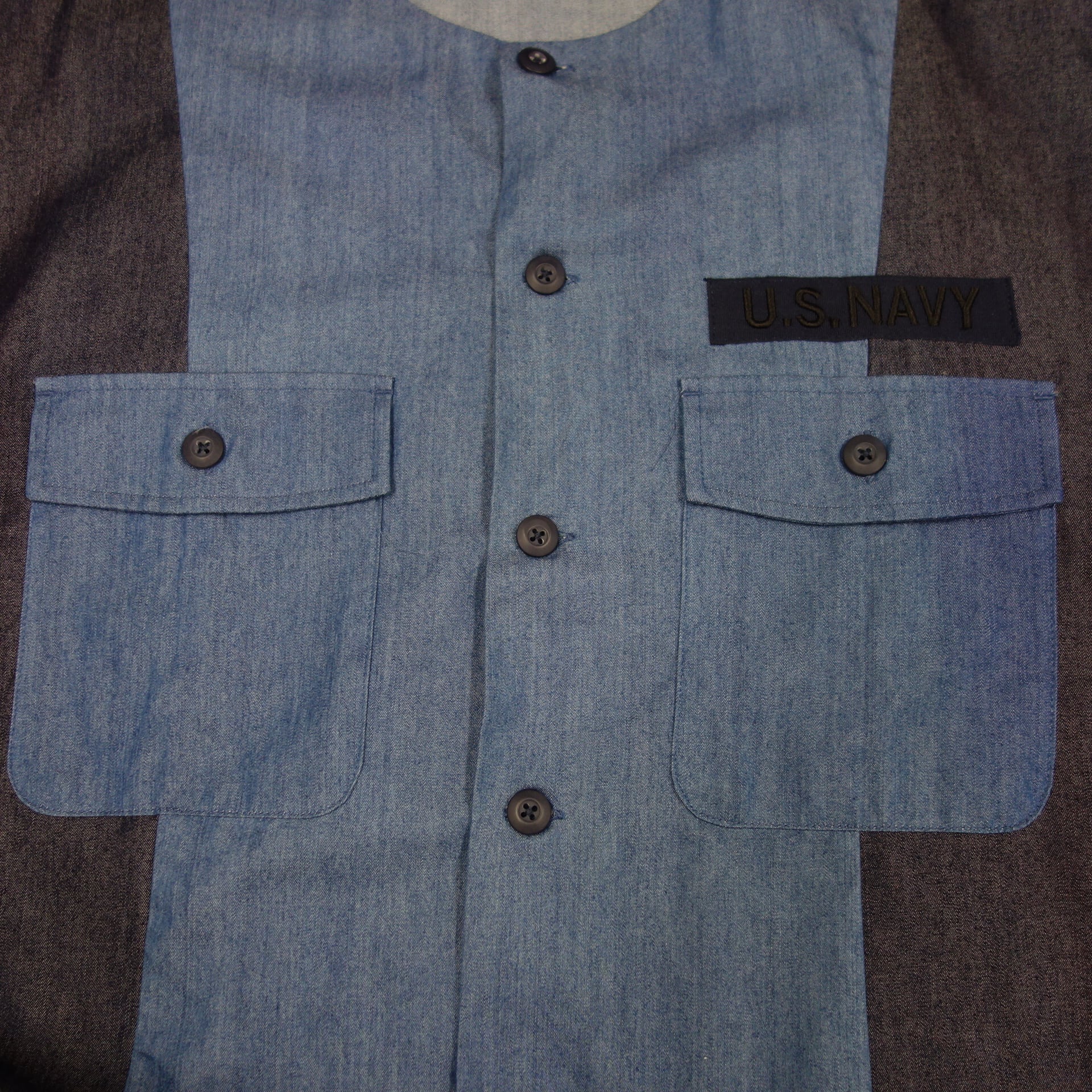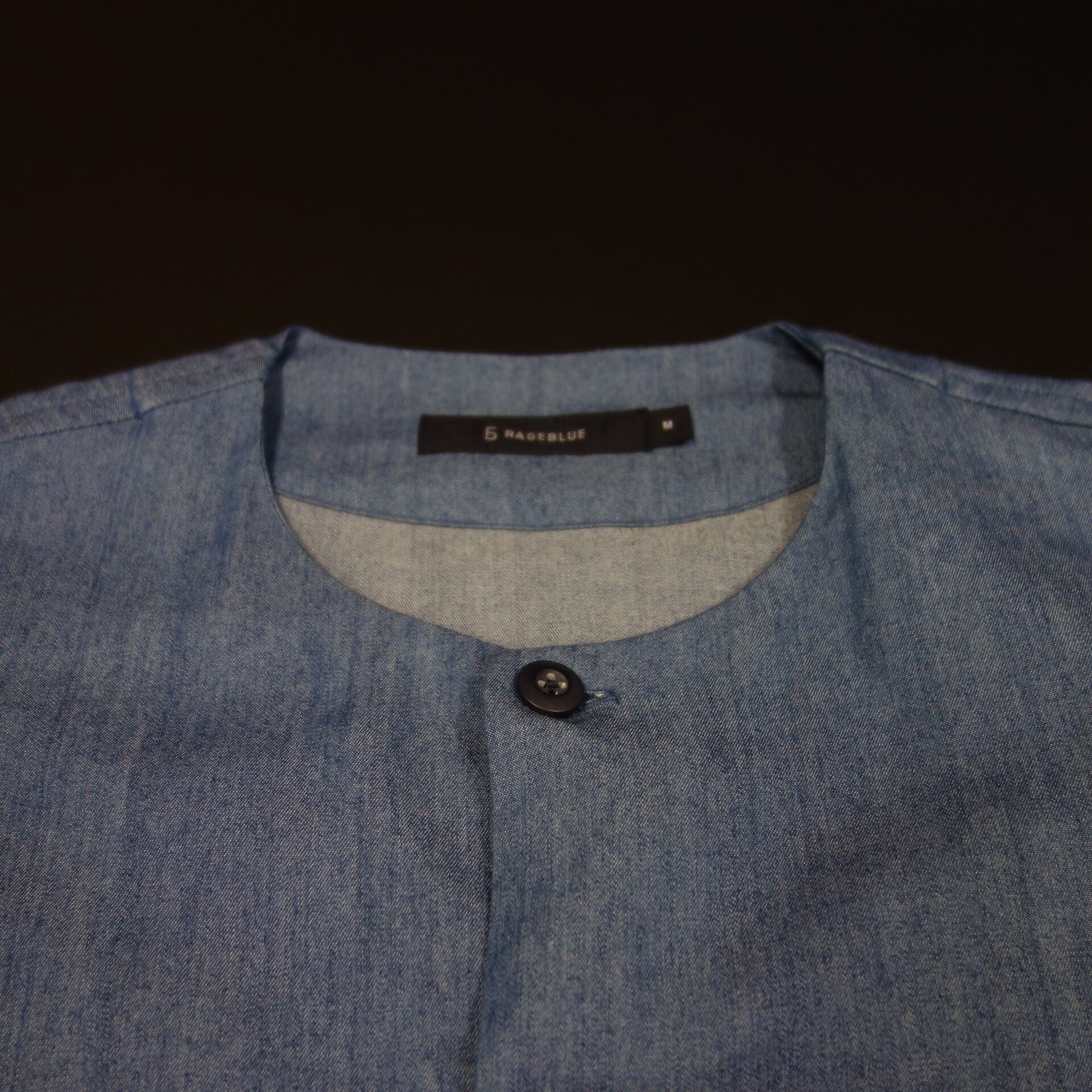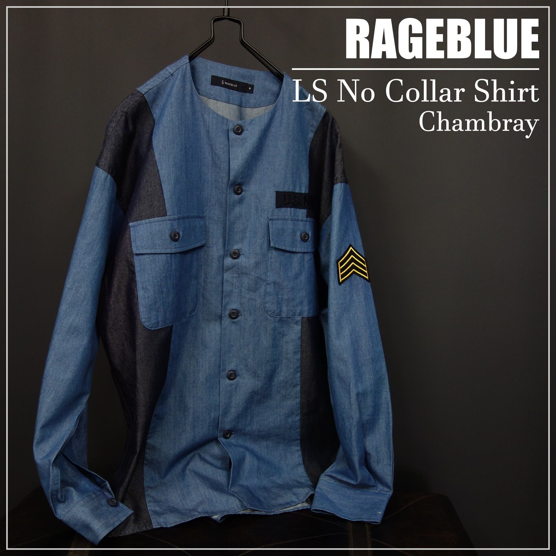 人気☆RAGEBLUE レイジブルー 長袖ノーカラーシャツ シャンブレー ワッペン SIZE M ブルー U.S.NAVY グッドデザイン