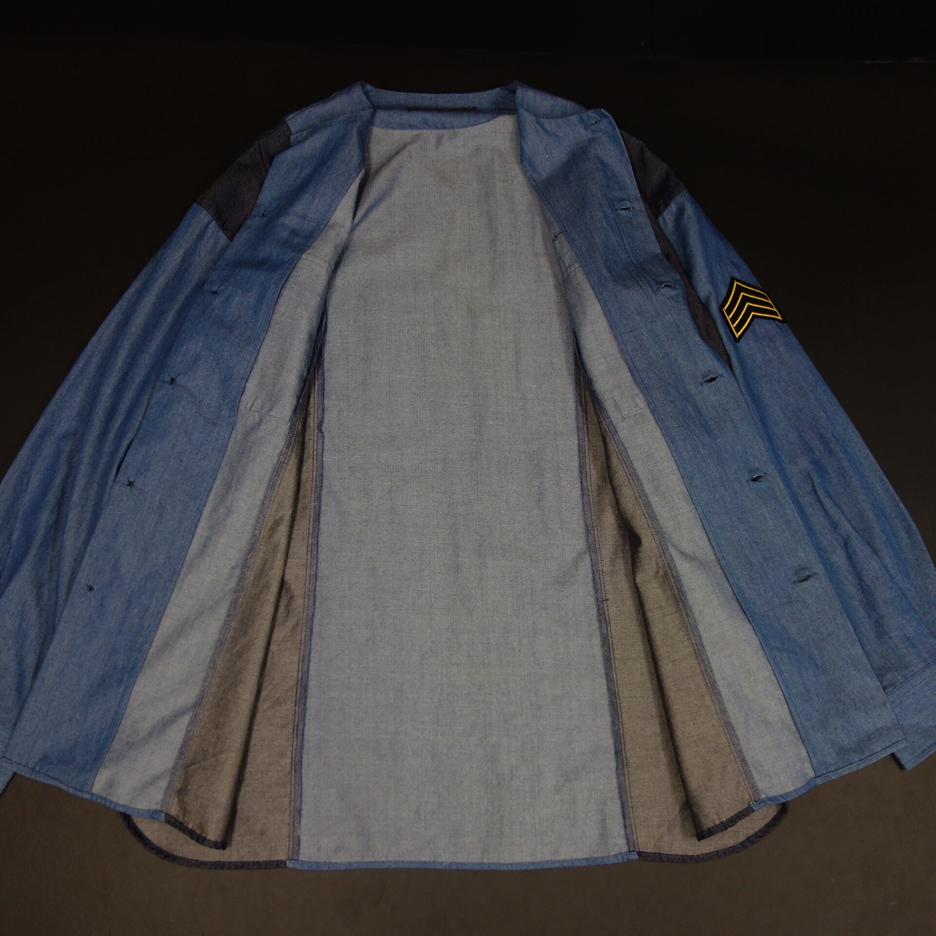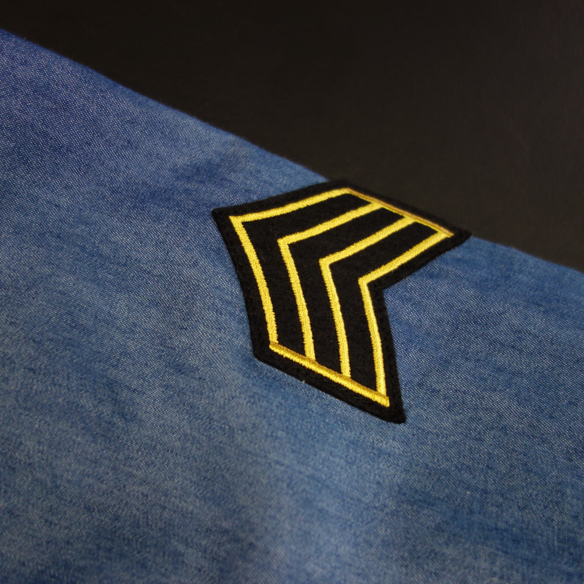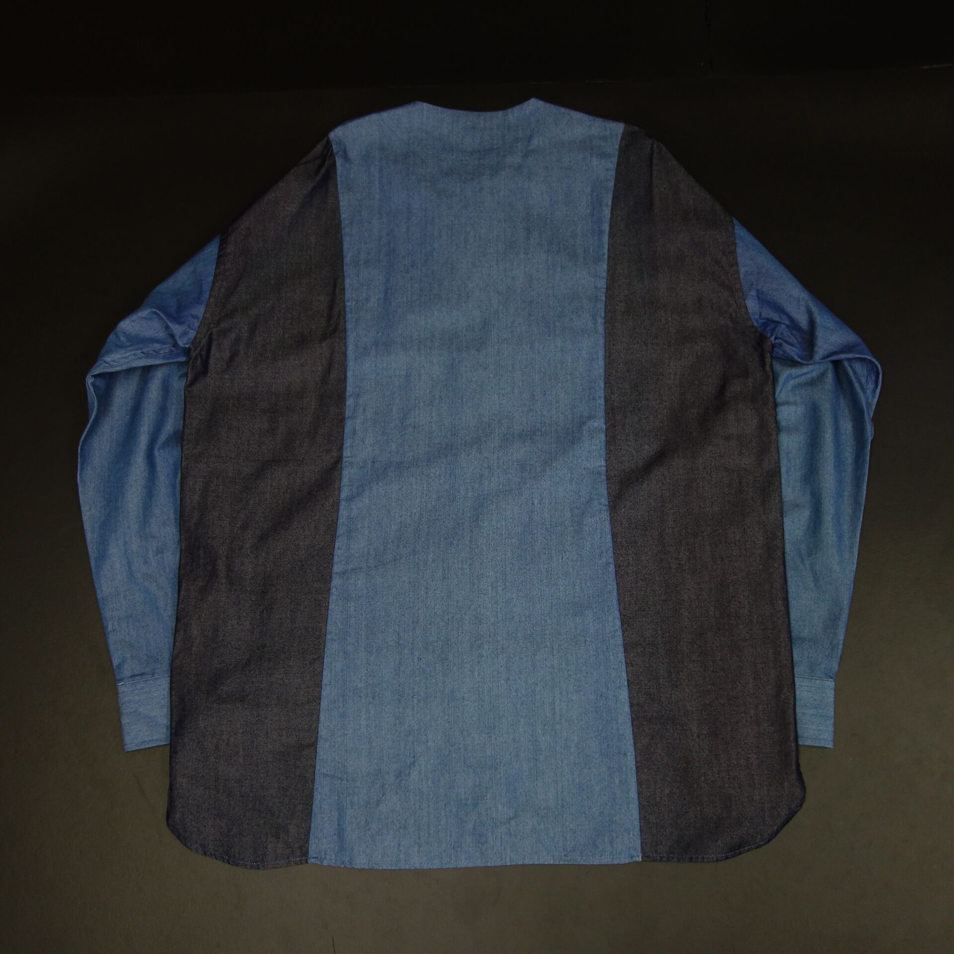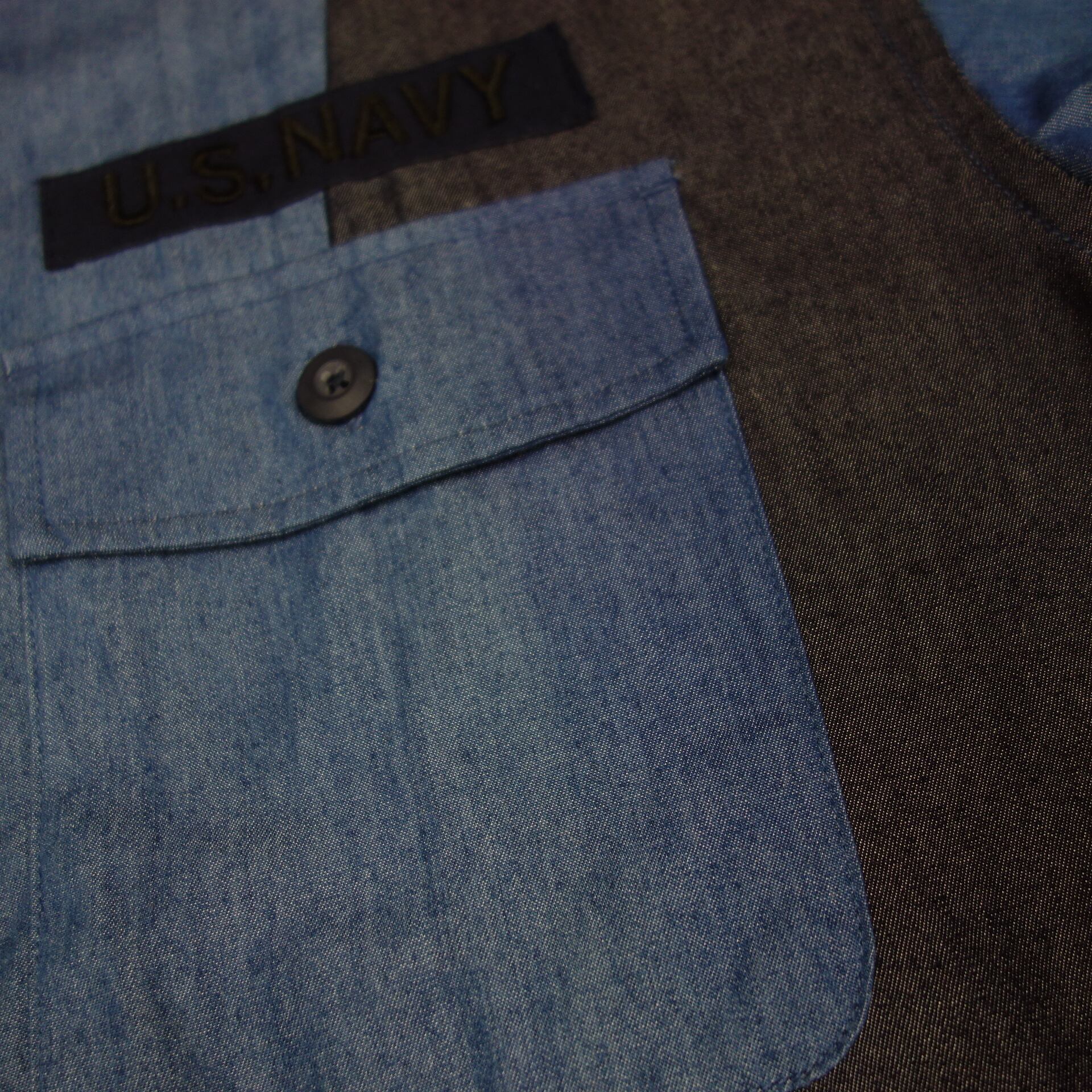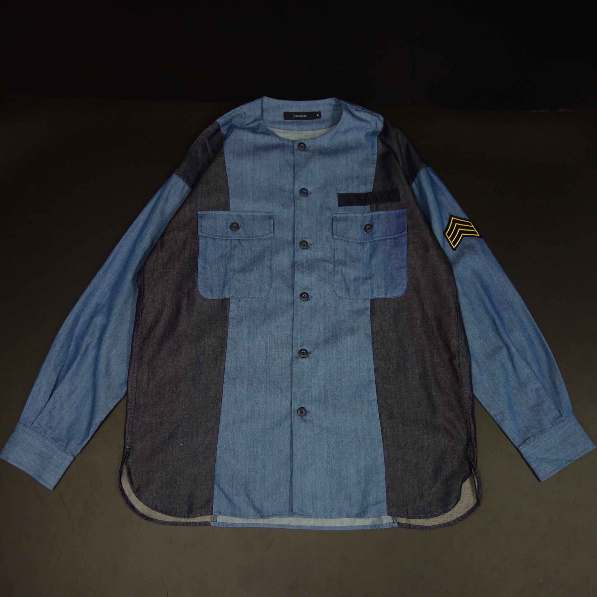 人気☆RAGEBLUE レイジブルー 長袖ノーカラーシャツ シャンブレー ワッペン SIZE M ブルー U.S.NAVY グッドデザイン