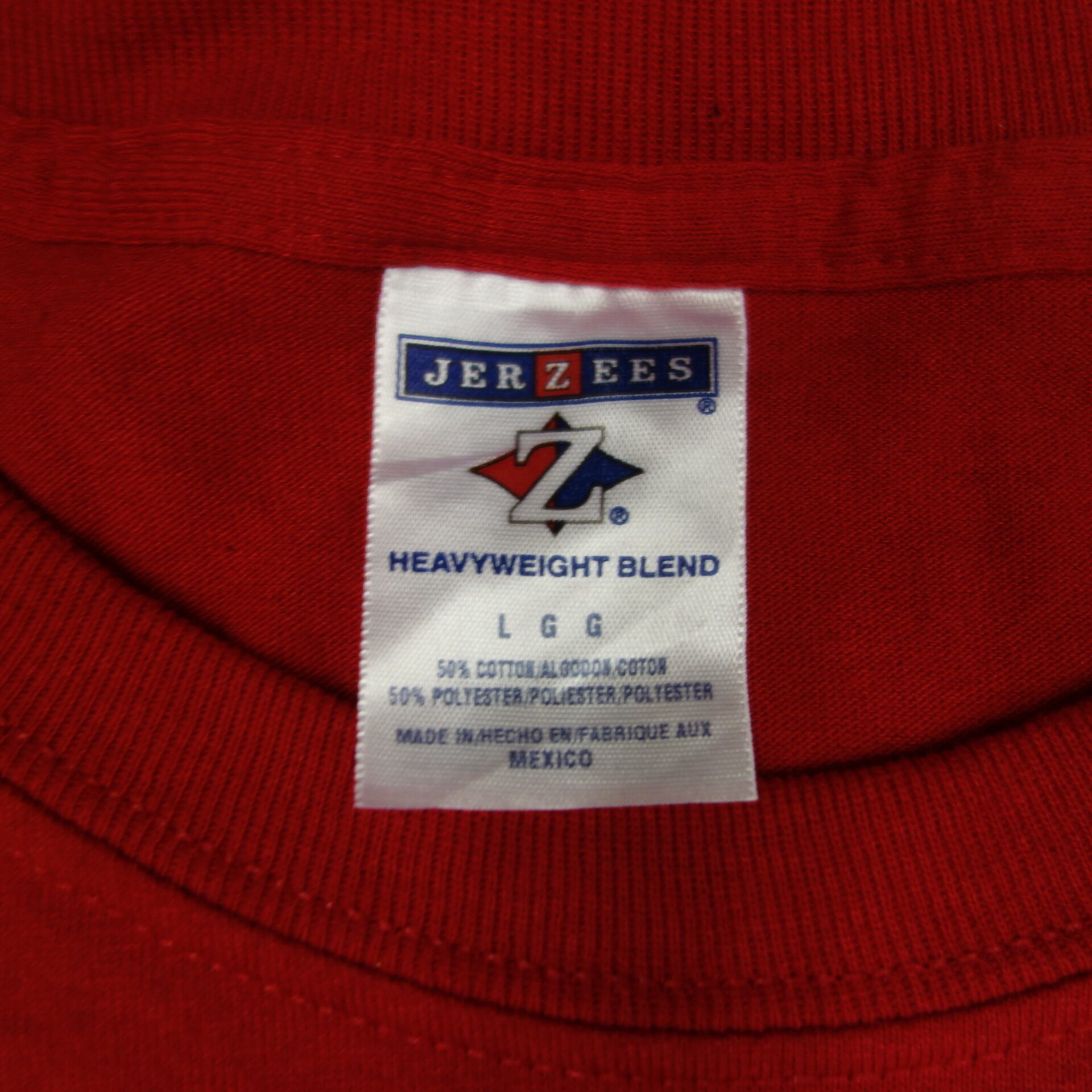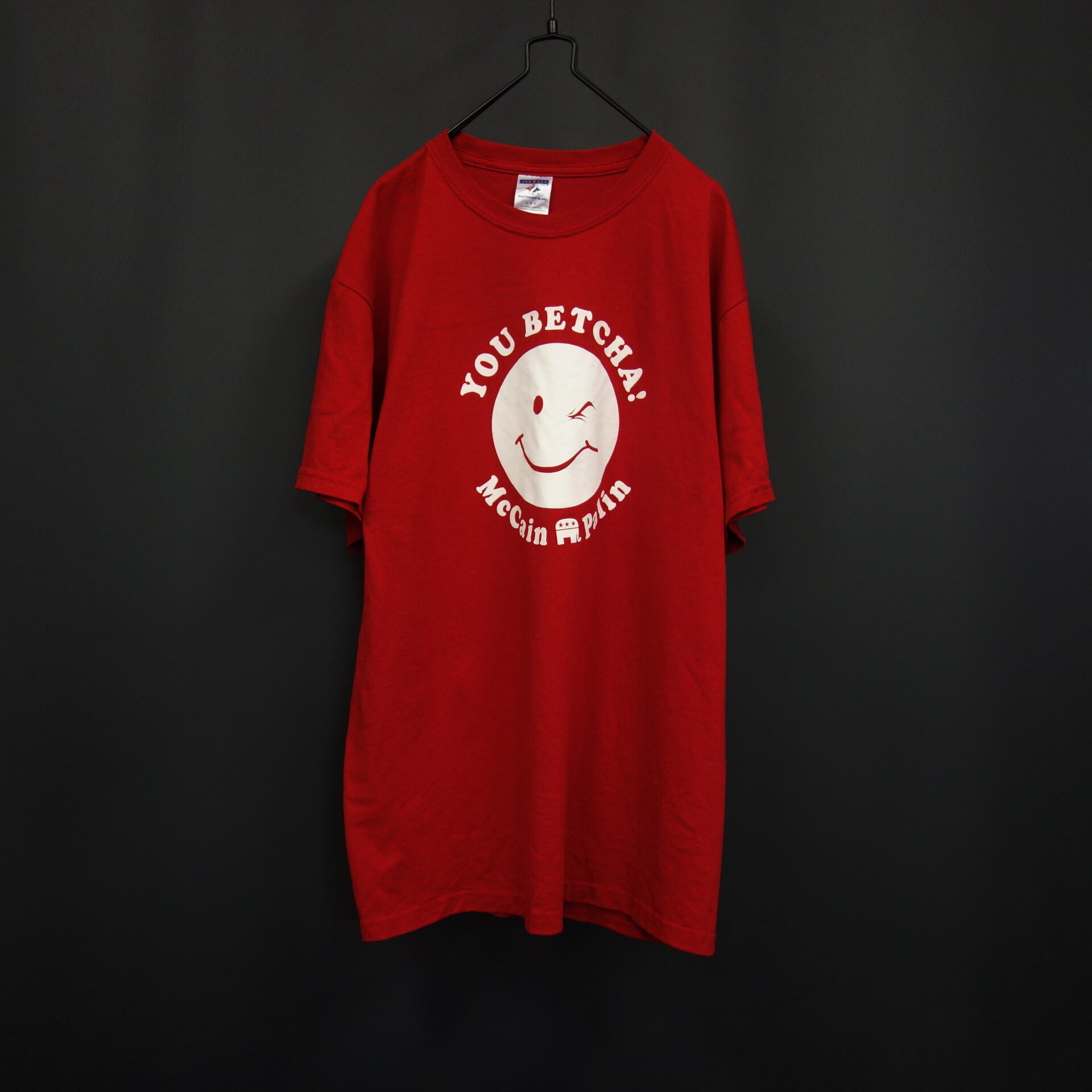US古着☆JERZEES ジャージーズ 半袖プリントTシャツ スマイル SIZE L レッド グッドデザイン 激かわ