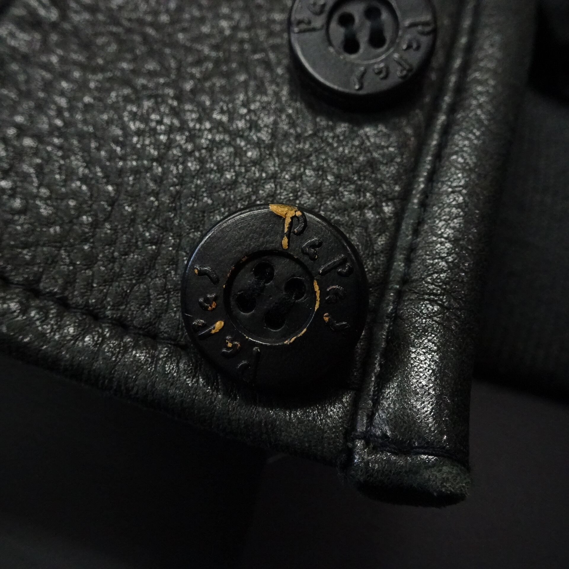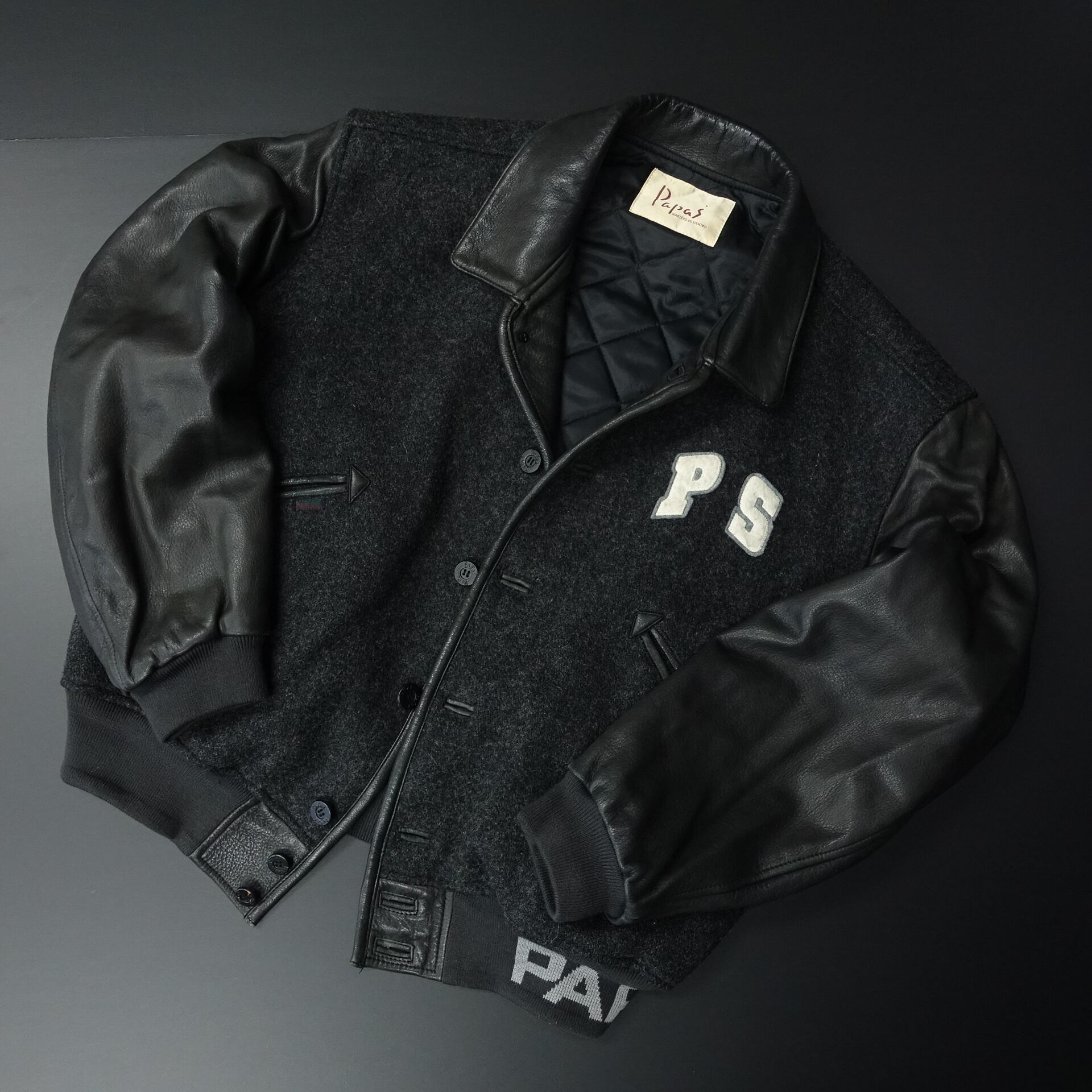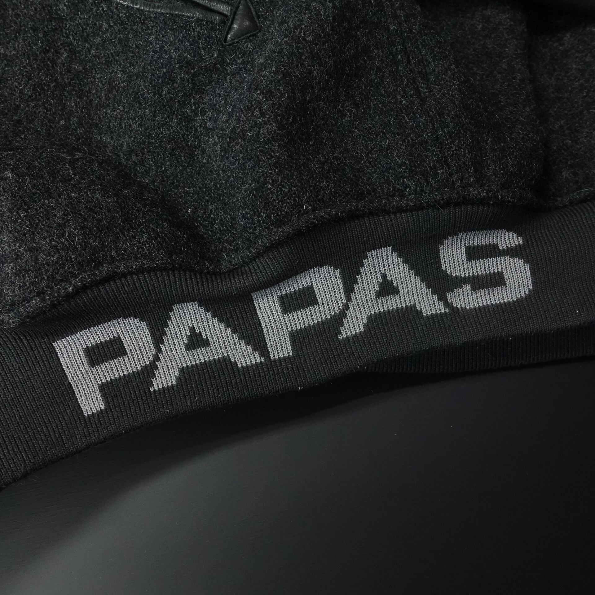 90s Vintage Papas パパス スタジャン レザー切り替え オールド 鹿革 ワッペン 90年 チャコールグレー