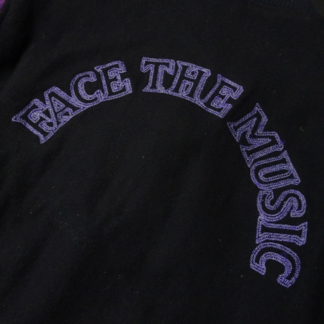 胸には「HMV」、バックには「FACE THE MUSIC」の音楽デザイン。