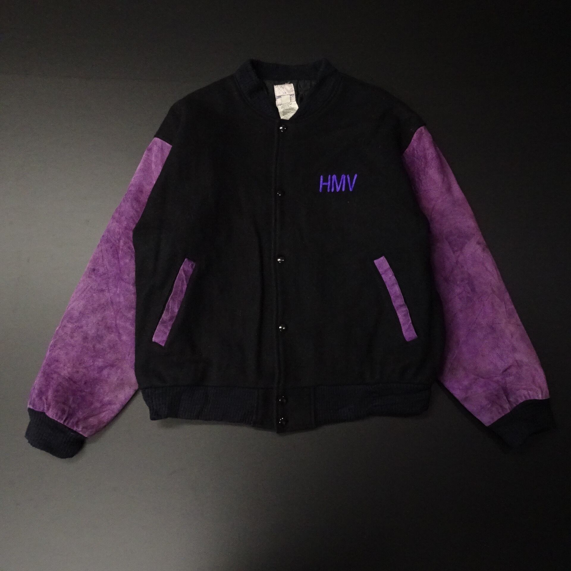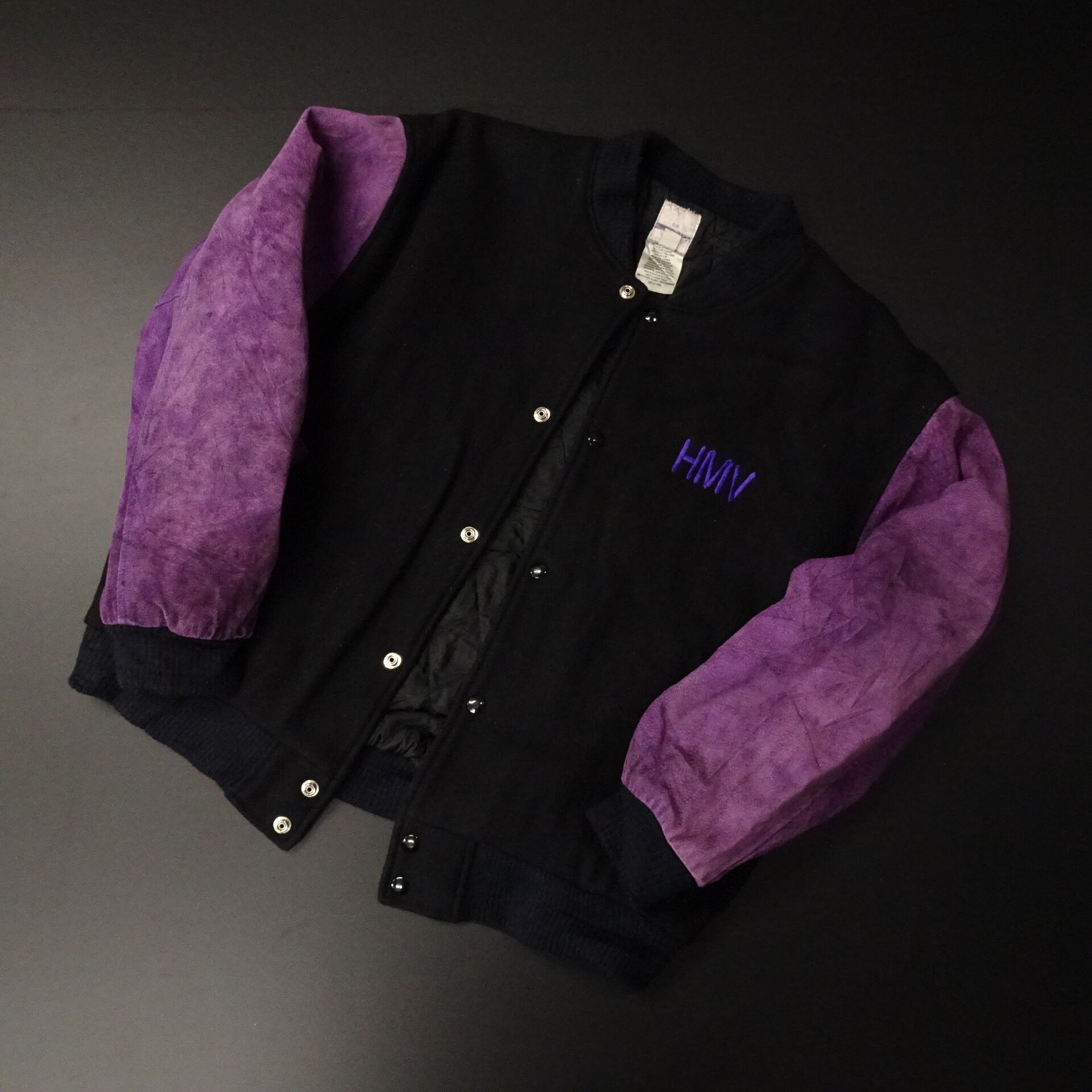 90s Vintage BROCKUM ブロッカム スタジャン レザー袖 カナダ製 HMV 90年代~ ブラック パープル