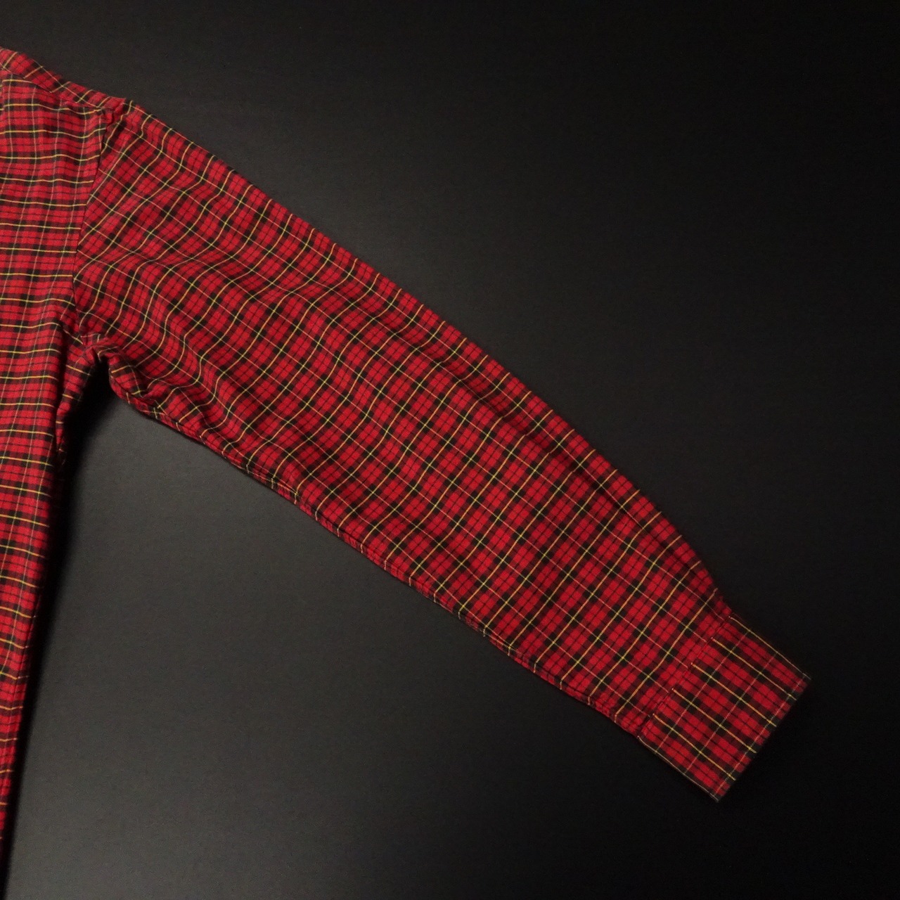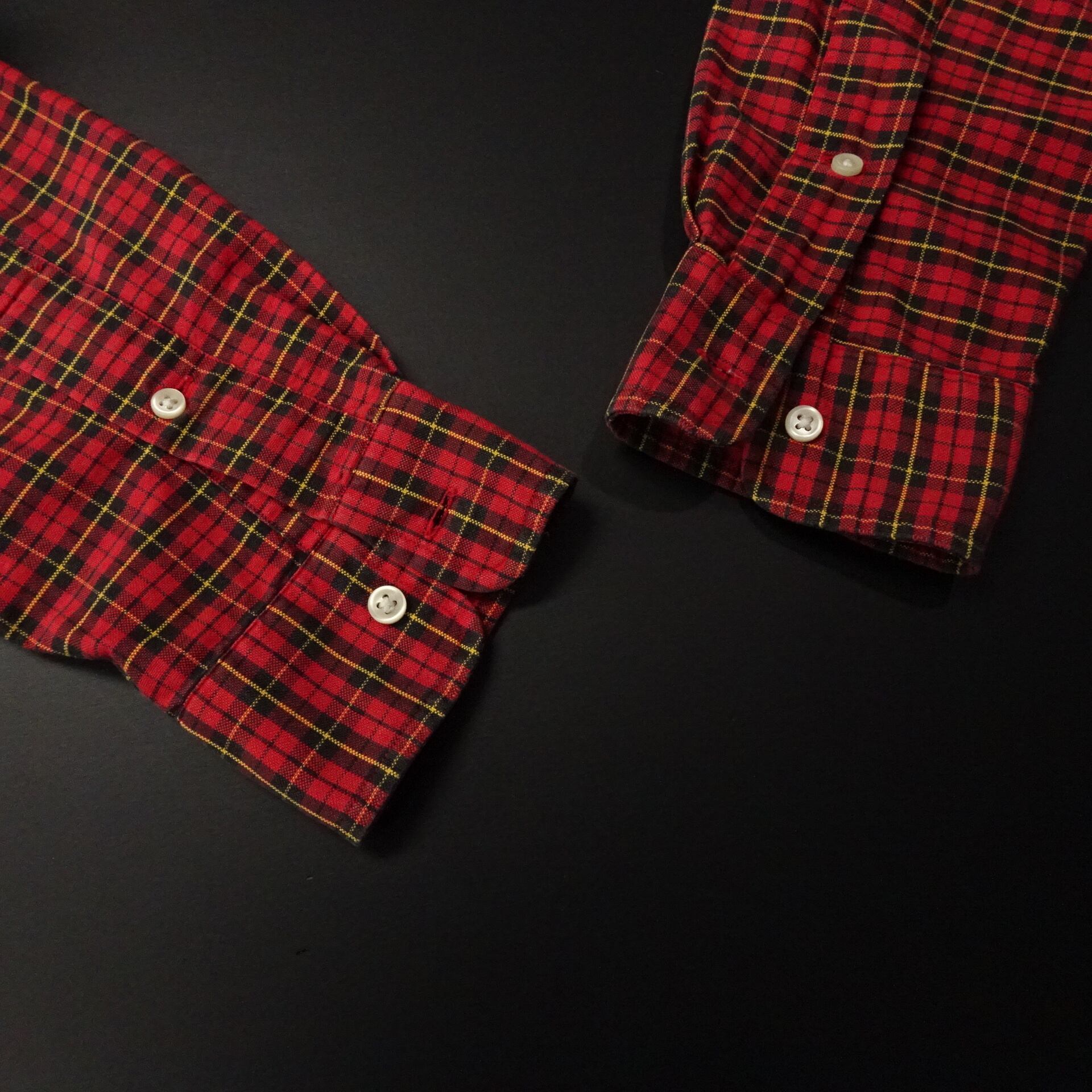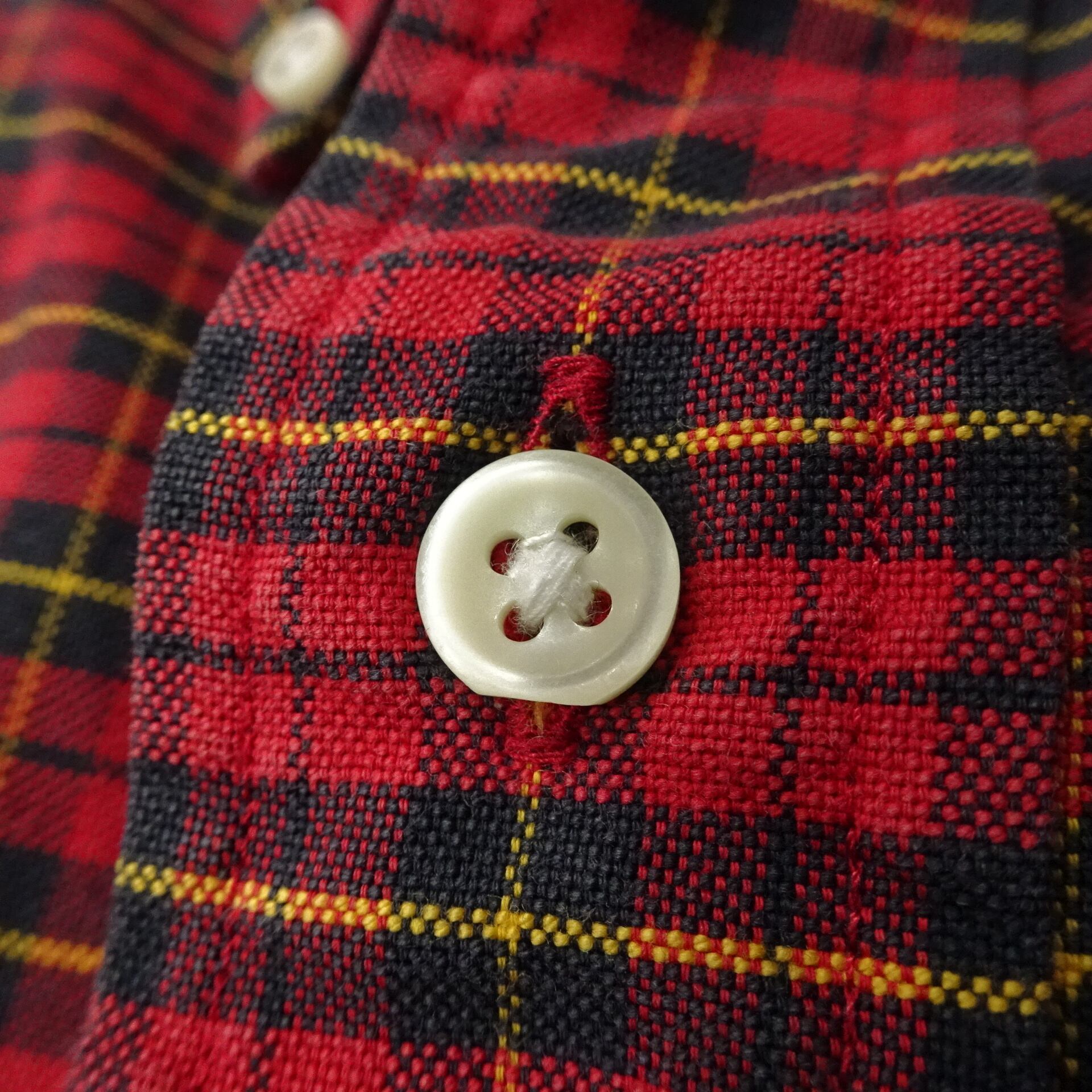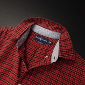 ボタンダウンでチェック柄。レッドベースにイエローライン。