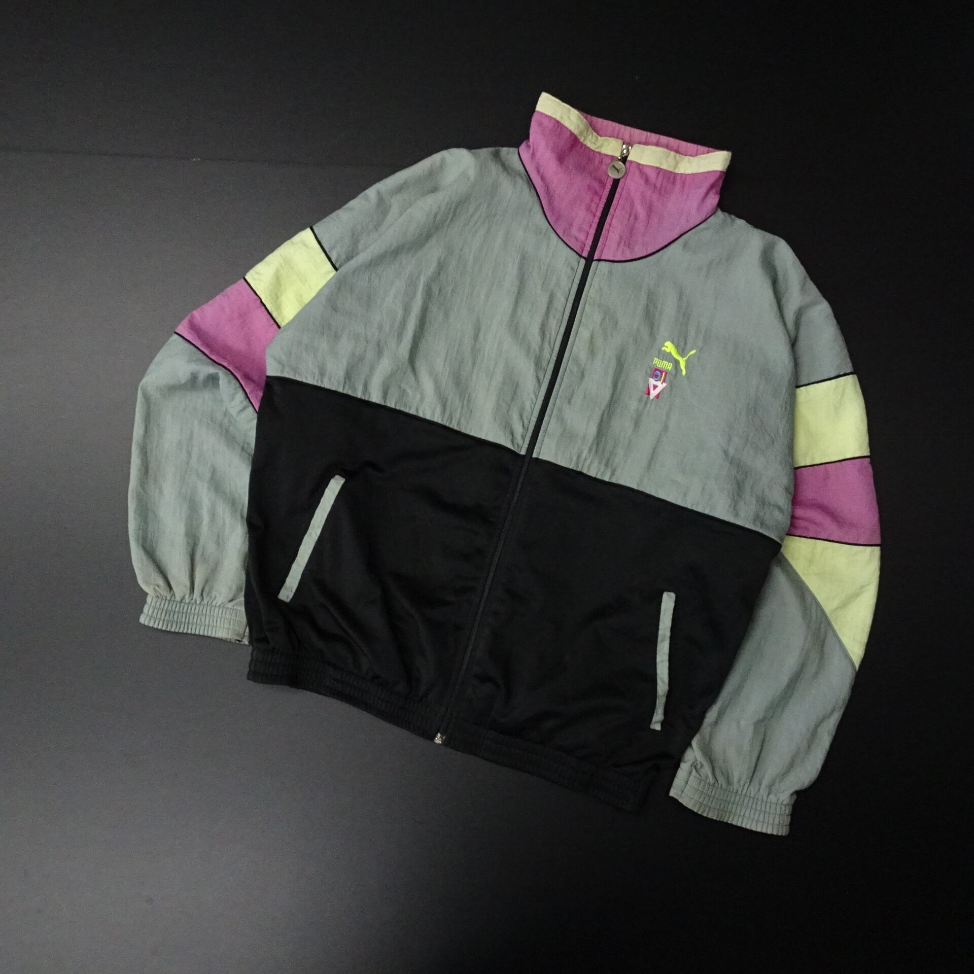 80s- Vintage PUMA プーマ ナイロンジャケット 切替 チェンジング 希少 80年代~ グレー ブラック