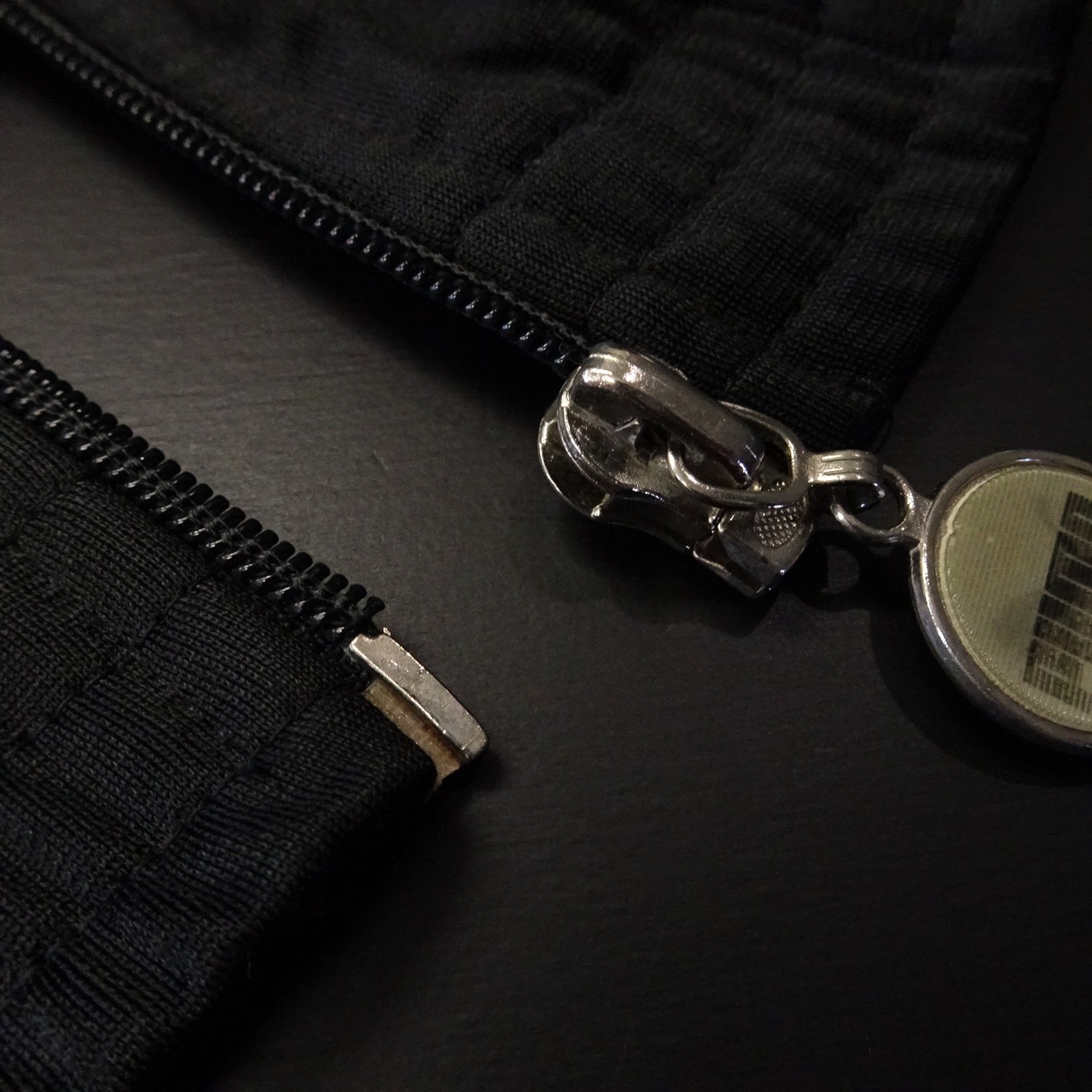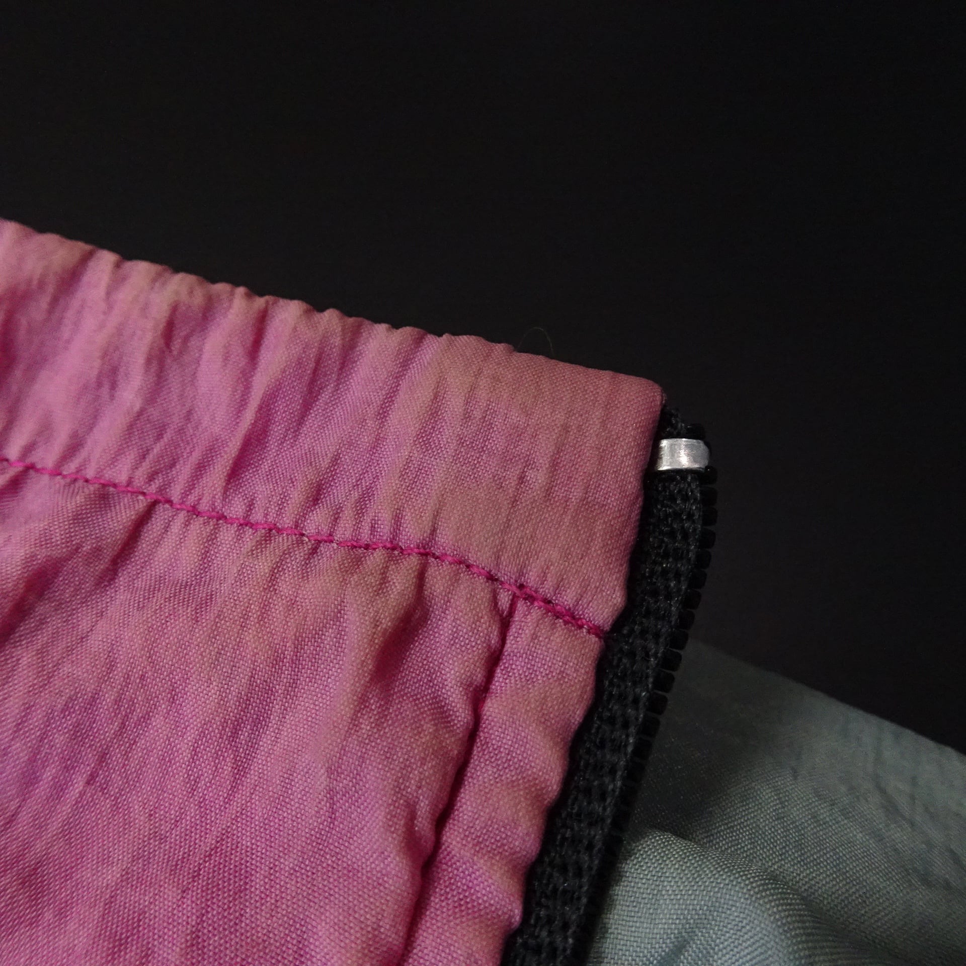 上下でナイロンとポリエステルの切り替えになっており、ジップの引手のマークはチェンジング仕様。