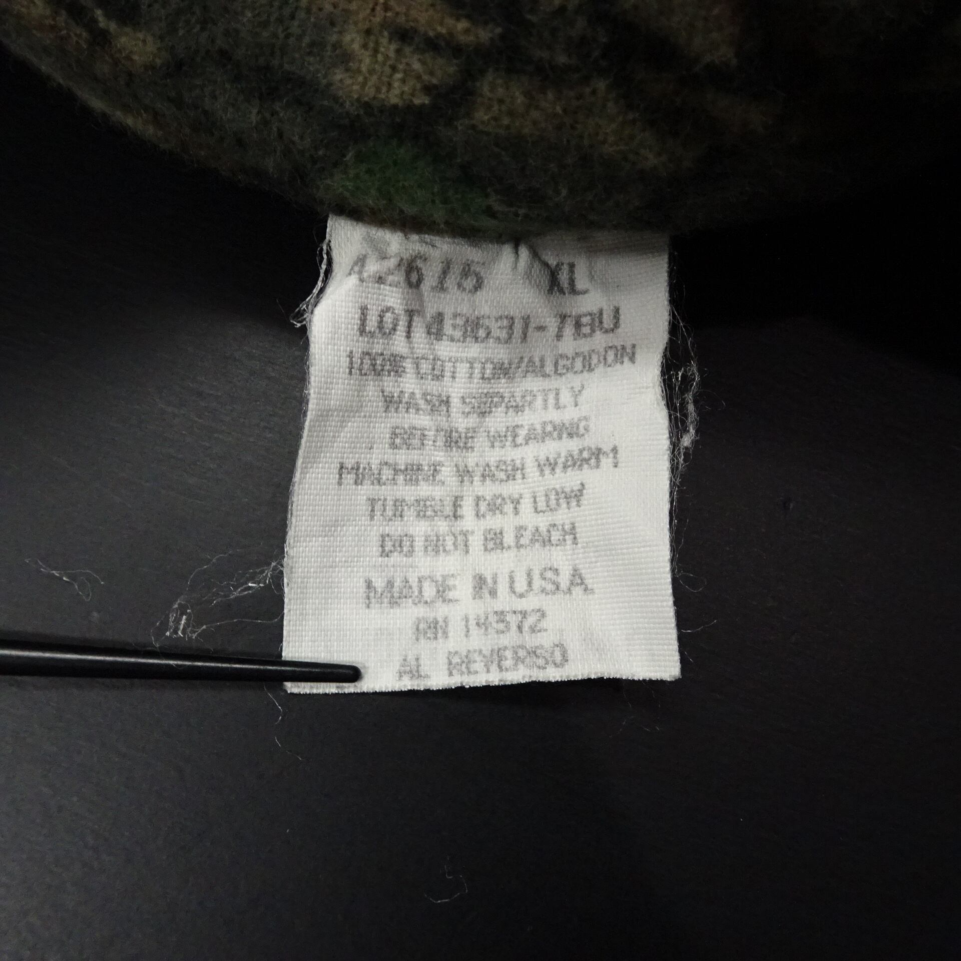 アメリカ製で、「REBARK」迷彩のフランネル素材。